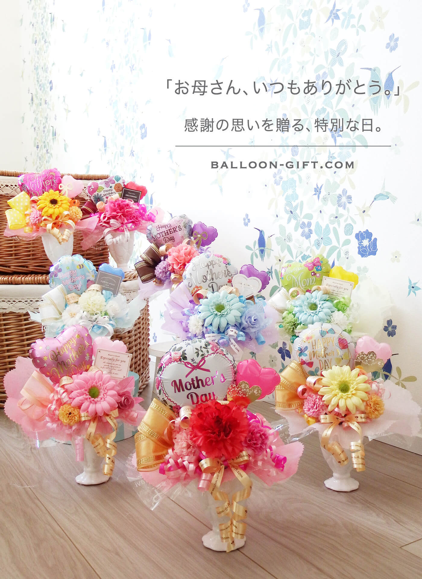 母の日専用卓上アレンジ 「ママに感謝を込めて、母の日ミニポット2026」母の日専用バルーン電報