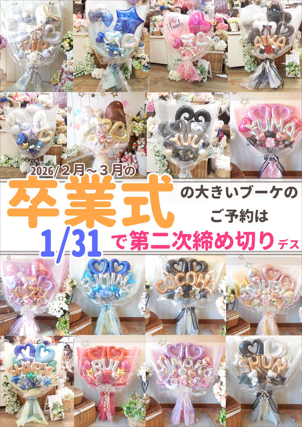 併せて、卒業シーズンの超繁忙期がすぐにやってきます。大きい商品は1月末で締め切りになりますのでお急ぎご予約をおねがいします★ -