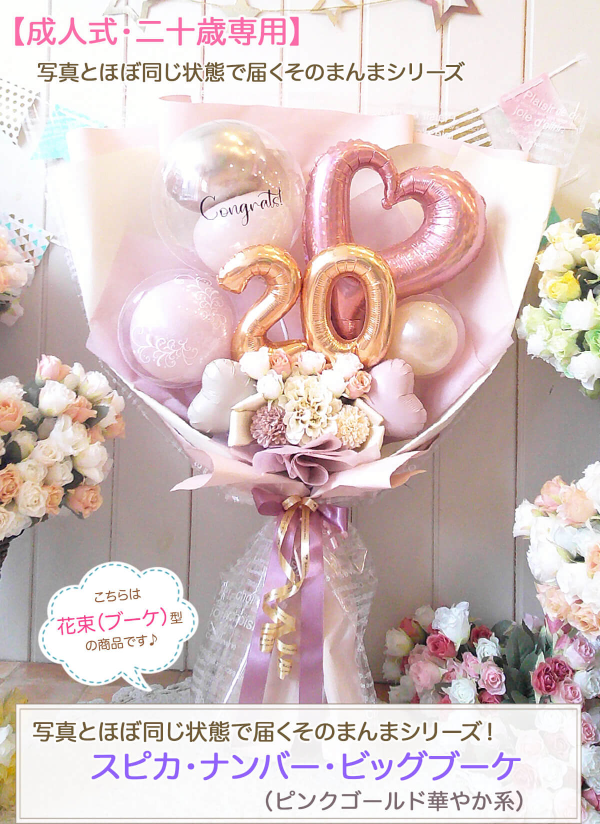 3. 【成人式・二十歳専用】写真とほぼ同じ状態で届くそのまんまシリーズ! ★花束ブーケ:スピカナンバーのBIGブーケ (数字20または18/ピンクゴールド華やか系orモノトーンかっこいい系)送料込 11,500円・店舗受取 9,850円 税別【BL-C/D/TK10】