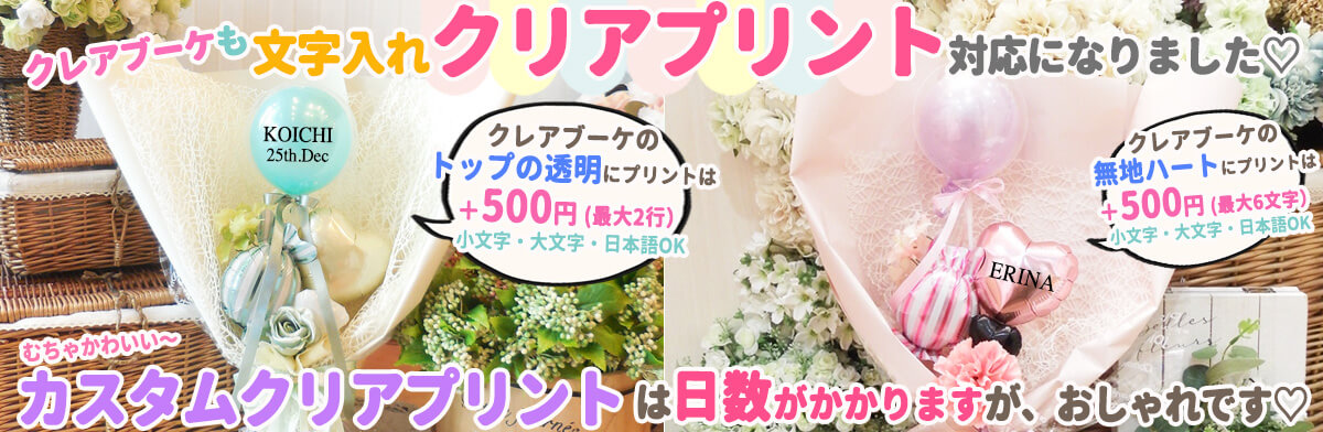 文字入れのバルーンは「トップの透明」または「無地ハート」かご希望を選んでください