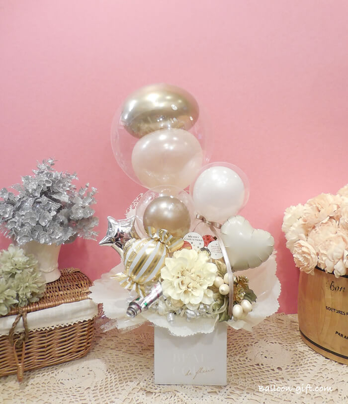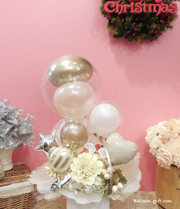 3. 《送料無料 7,700円》 卓上アレンジ『クリスマス・ノエル・ボックス』クリスマスに大人気のバルーン電報★ 【C】 Christmas NOEL BOX balloon in box