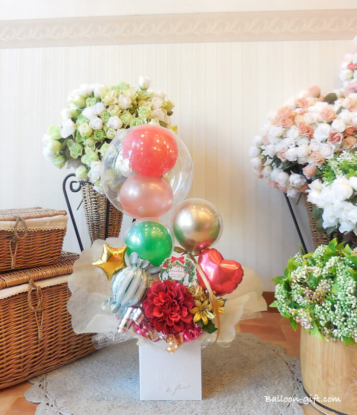 クリスマスに大人気のバルーン電報★ 【C】 Christmas NOEL BOX balloon in box