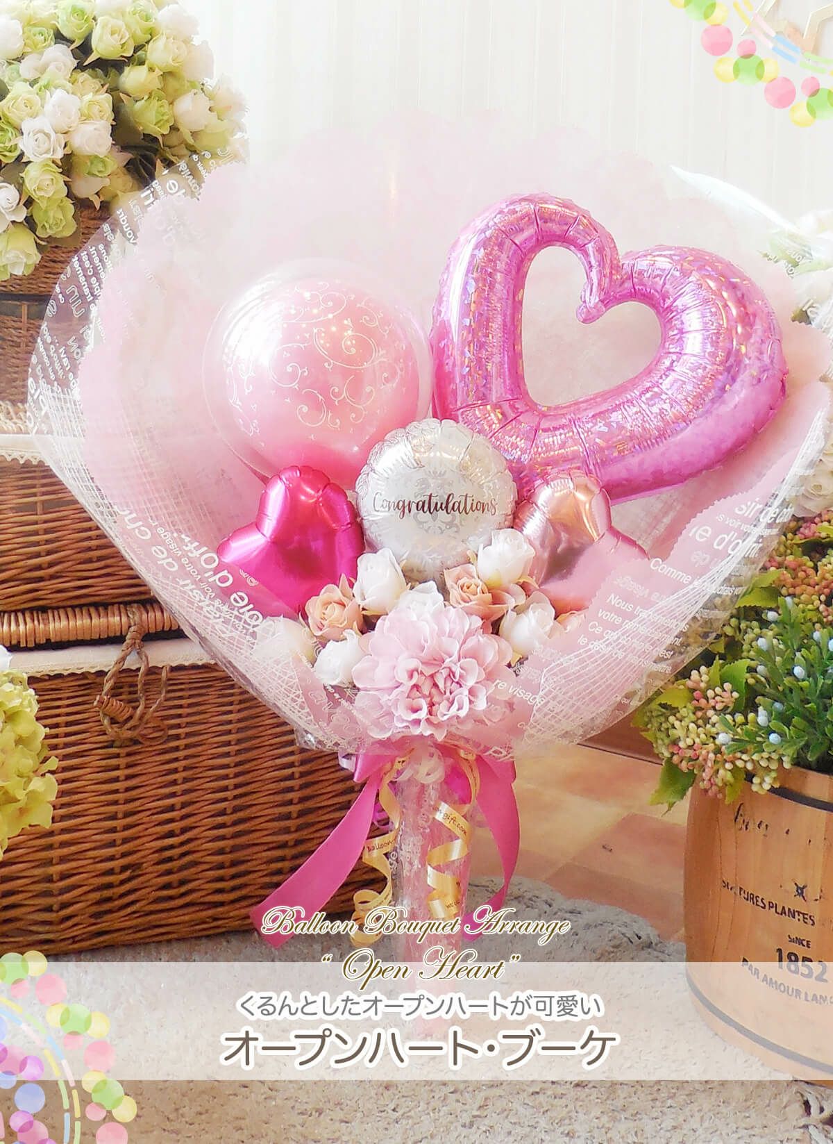 4. 【通常バージョン】バルーンの花束ブーケ『オープンハート・ブーケ』《送料別:4900円》 お誕生日やウエディング・発表会・卒業祝いに大人気のバルーン電報【通常時期 翌日発送、繁忙期翌々日発送】