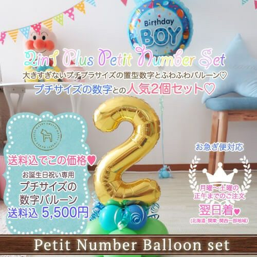 5. 【お誕生日・周年のお祝い専用】2in1PLUS 小さな数字バルーンがついてくる★『プチサイズのナンバーバルーンセット』 【BL-E】お誕生日や周年のお祝いに人気の小さめ数字をつかったバルーンギフト《中箱送料込 6000円/ 店舗受取:4400円 税別より》