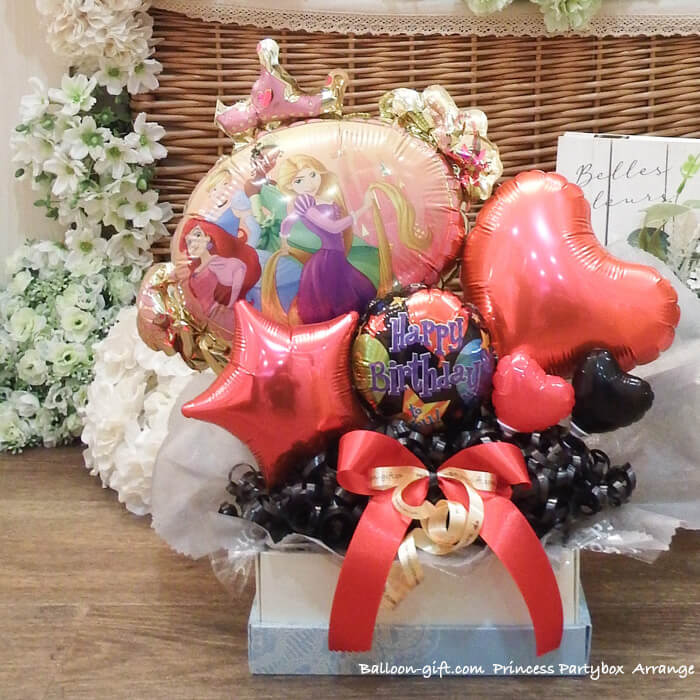 卓上アレンジ 「プリンセス・パーティ・ボックス」 《送料無料 4800円》みんな大好きディズニープリンセスみんな大集合の大きめアレンジ お誕生日や発表会にオススメのバルーン電報【BL-B/D3】