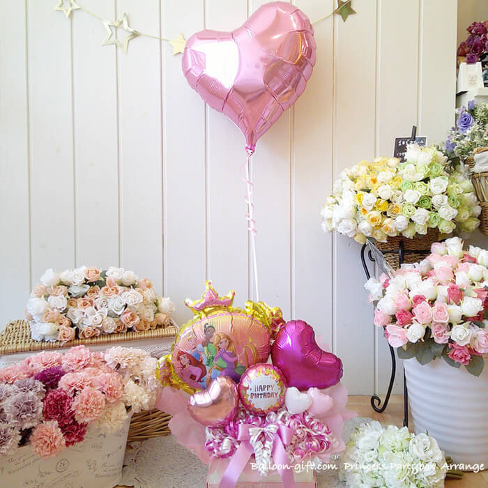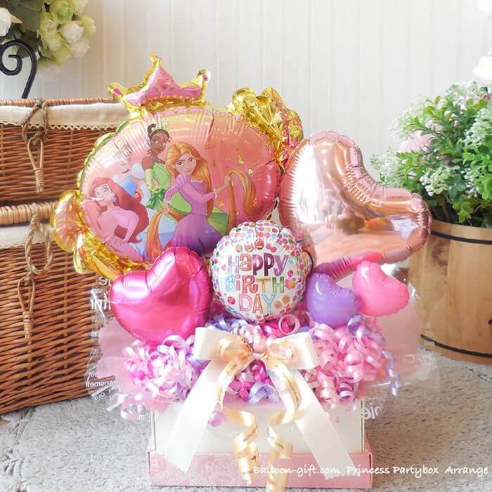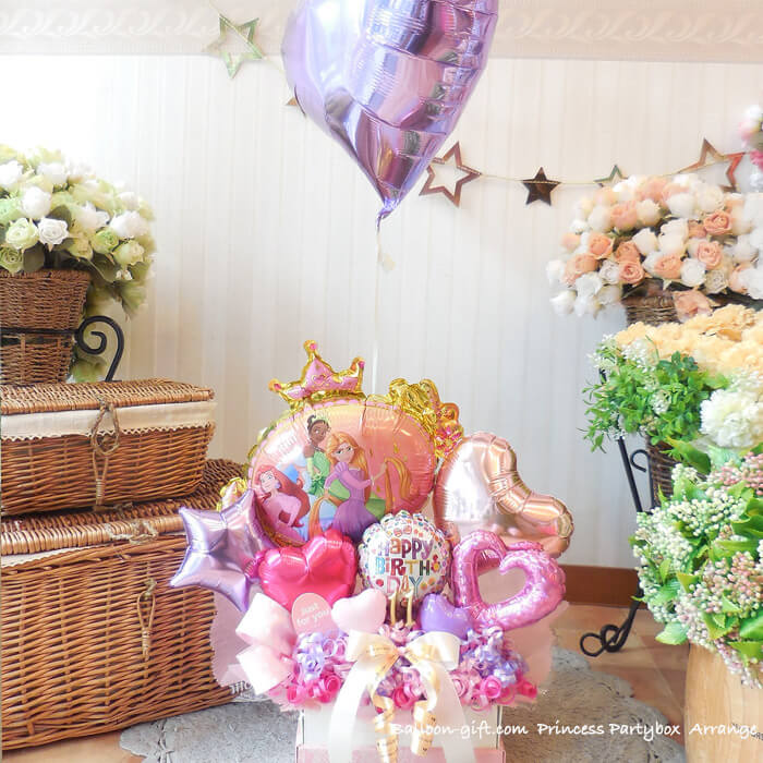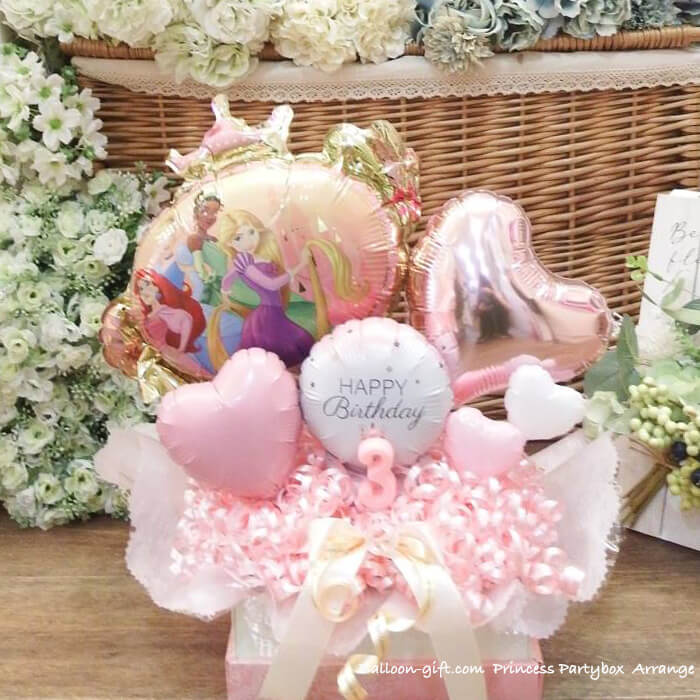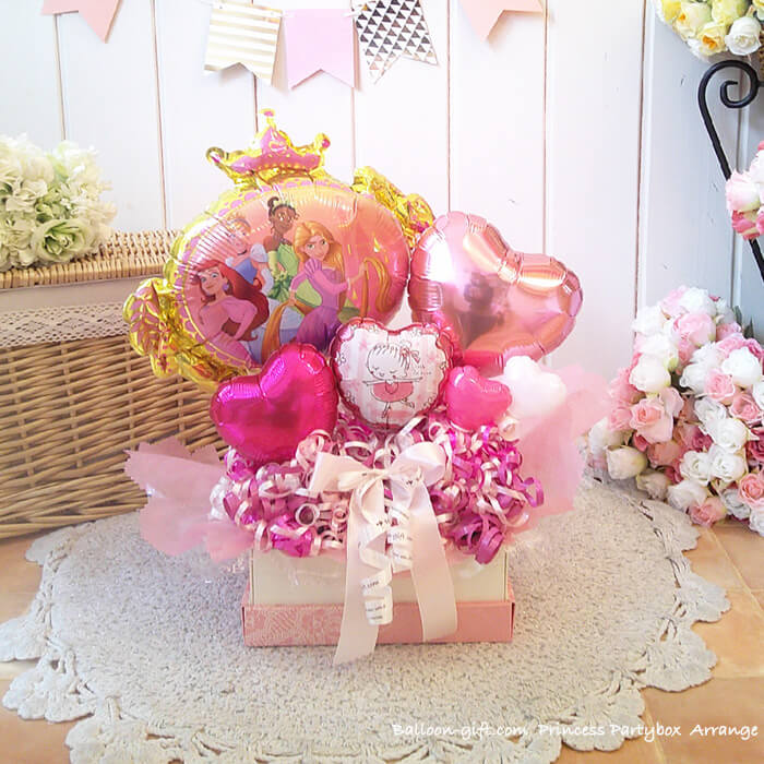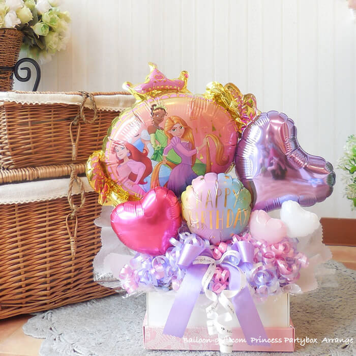 3. 卓上アレンジ 「プリンセス・パーティ・ボックス」 《送料無料 4800円》みんな大好きディズニープリンセスみんな大集合の大きめアレンジ お誕生日や発表会にオススメのバルーン電報【BL-B/D3】