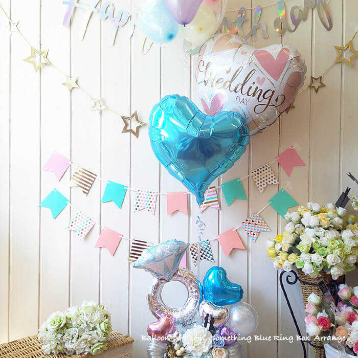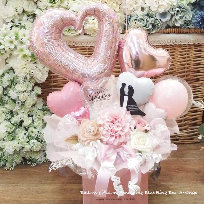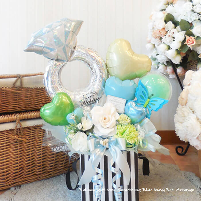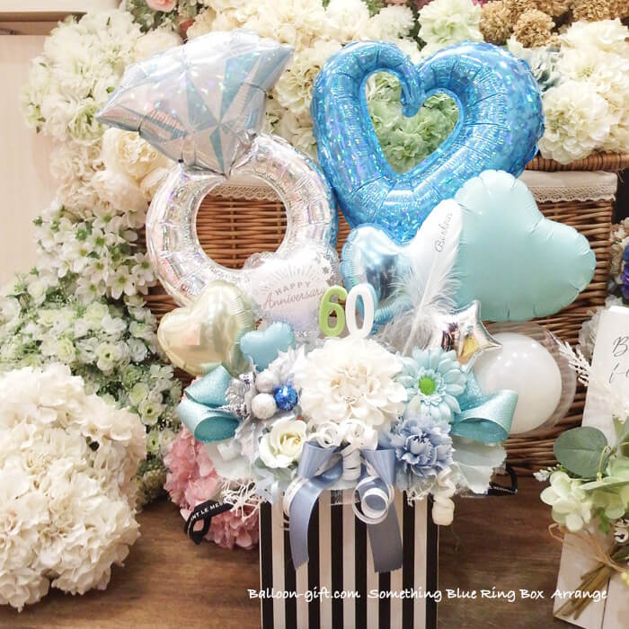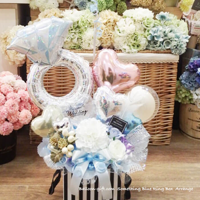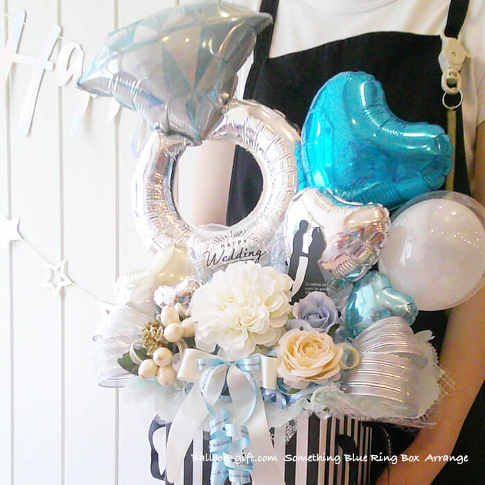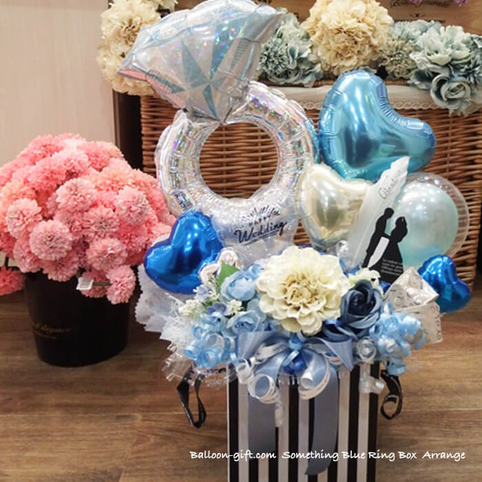 3. 人気卓上アレンジ 「サムシングブルー・リング・ボックス」《送料無料 8530円》 ウエディング・入籍のお祝いにおすすめバルーン電★【BL-C/D3.5】