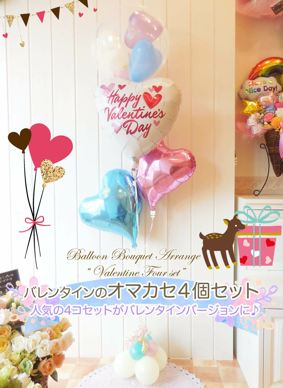 お急ぎなら、月〜土曜 正午までの決済確定ご注文は即日発送可能♡ 送料無料6900円★ おまかせ4個セットバレンタインセレクション とってもかわいいバルーン電報【BL-F】