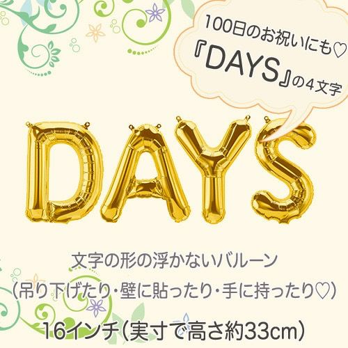 《送料別》文字の形のバルーン「100日のお祝いにも☆DAYSの4文字アルファベットバルーン(ゴールド)吊り下げ用」 1800円