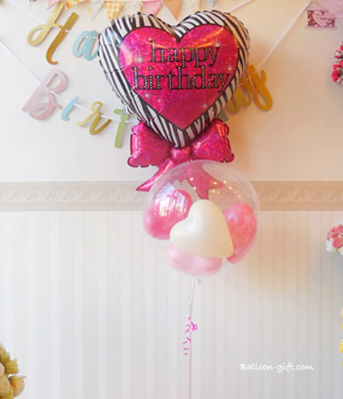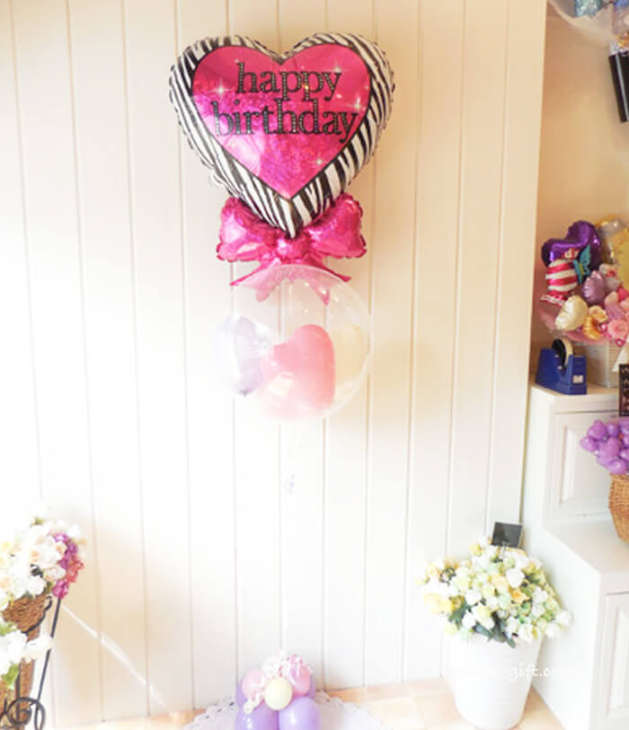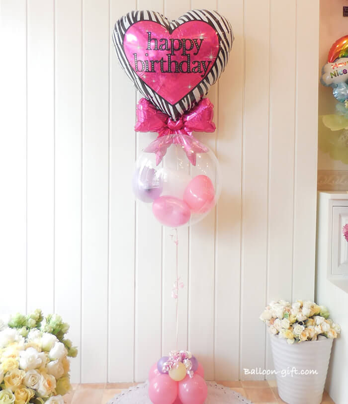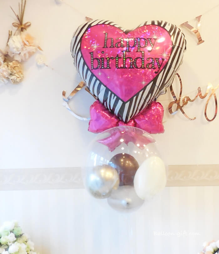 4. 【お誕生日専用バルーンギフト】2in1DX『ゼブラ・リボン・バースデーセット』【BL-E】店舗受け取り・発送どちらもOK! 《中箱 送料込:6000円 / 店舗受取:4500円 税別》