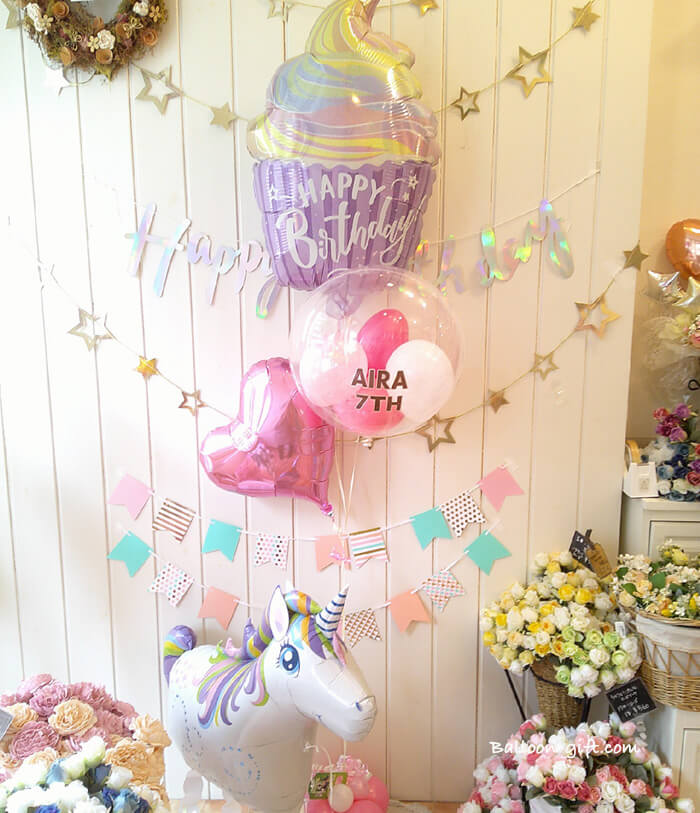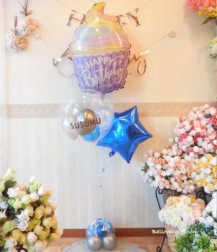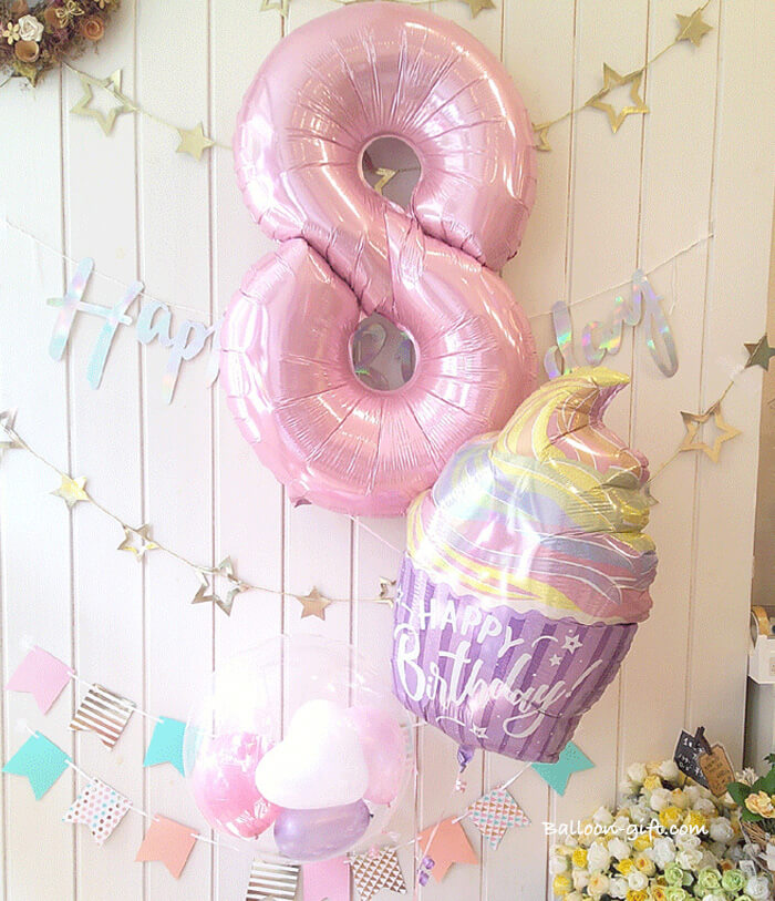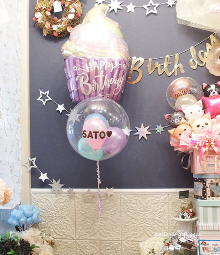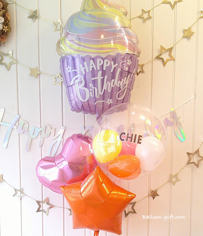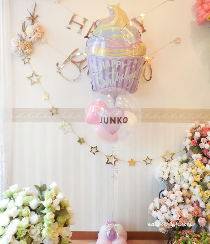 3. 【お誕生日専用】2in1DXゆめかわカラーのパステルバースデーカップケーキセット 《2in1DX中箱》お誕生日のお祝いやパーティにオススメのバルーン電報【BL-E】店舗受け取り・発送どちらもOK! 《送料込6000円 /店舗受取4500円 税別》