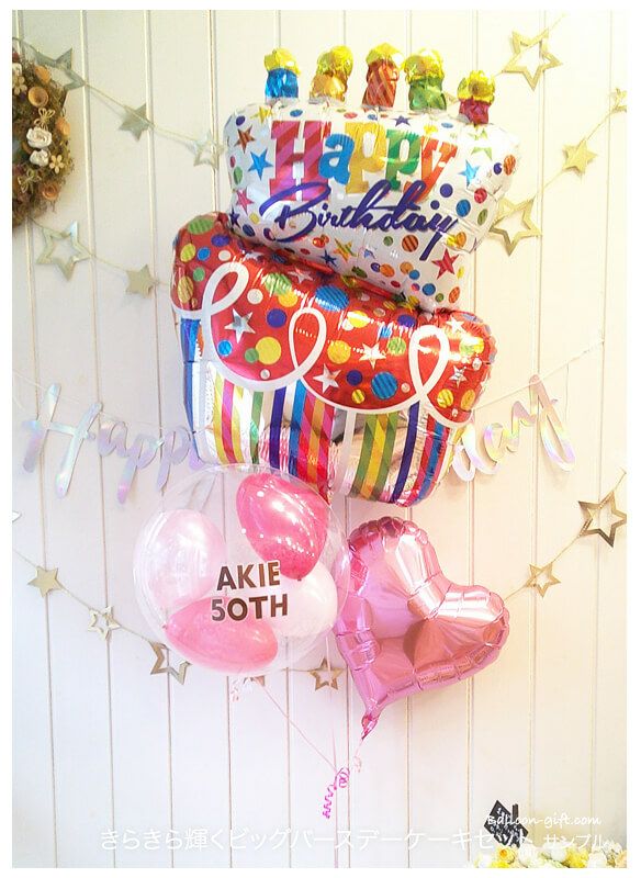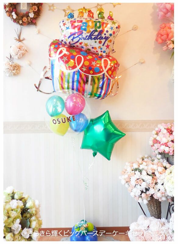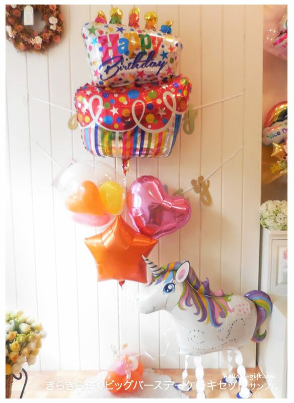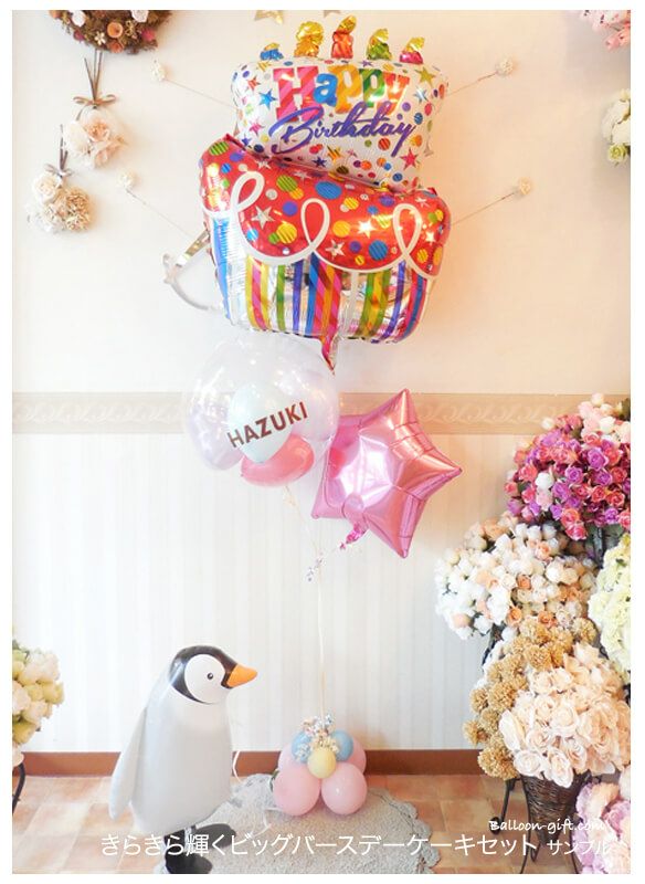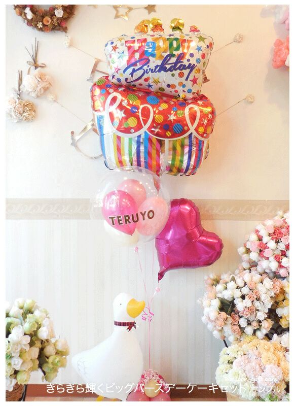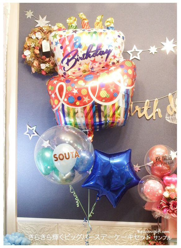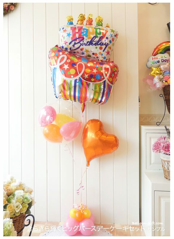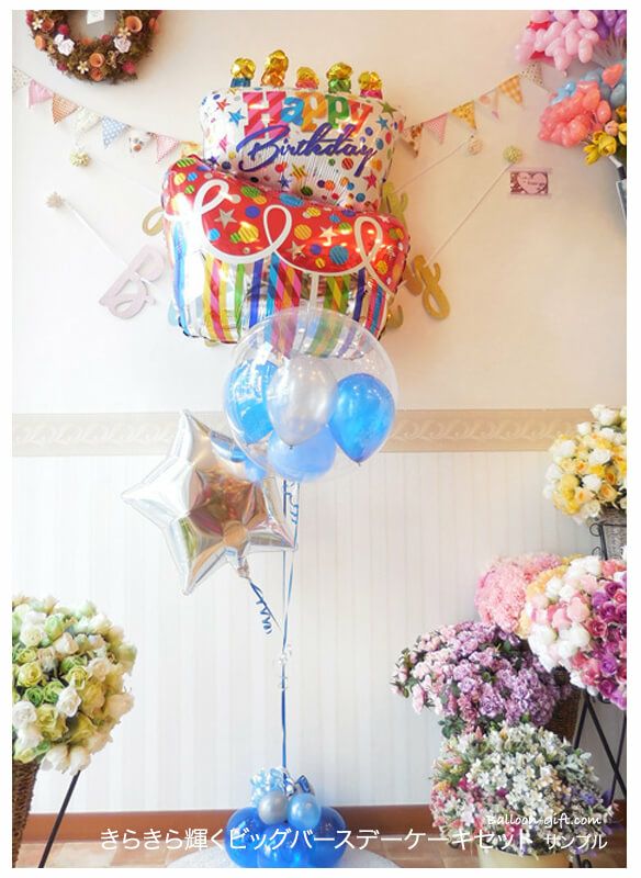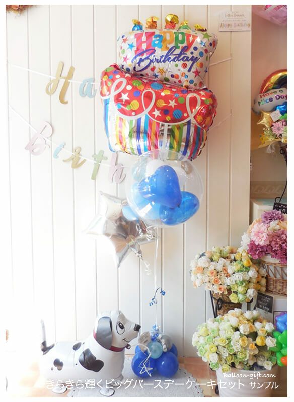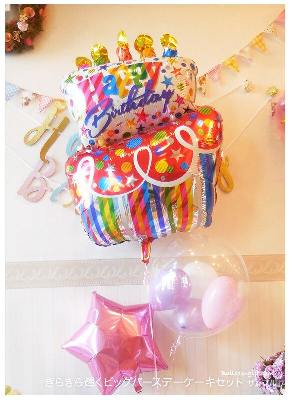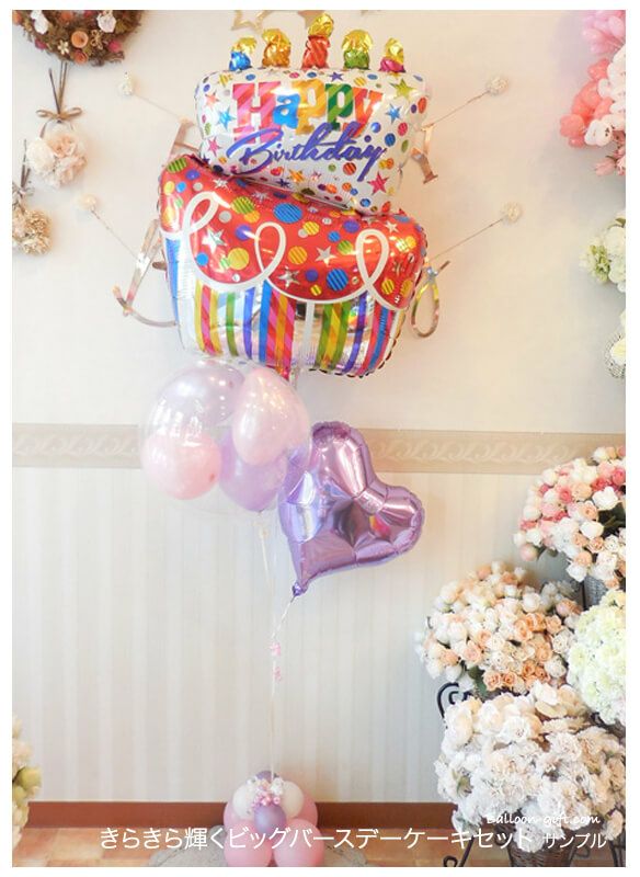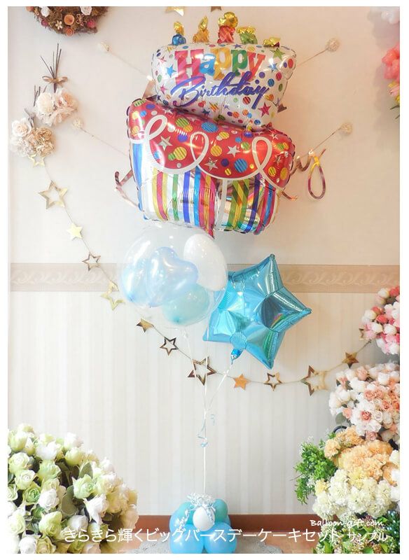 5. 【お誕生日専用バルーンギフト】3in1DX『きらきら輝くビッグバースデーケーキのふわふわ3個セット』【BL-F】★お誕生日のお祝い専用バルーン電報★店舗受け取り・発送どちらもOK! 《大箱 送料込 8000円 /店舗受取:5750円 税別》
