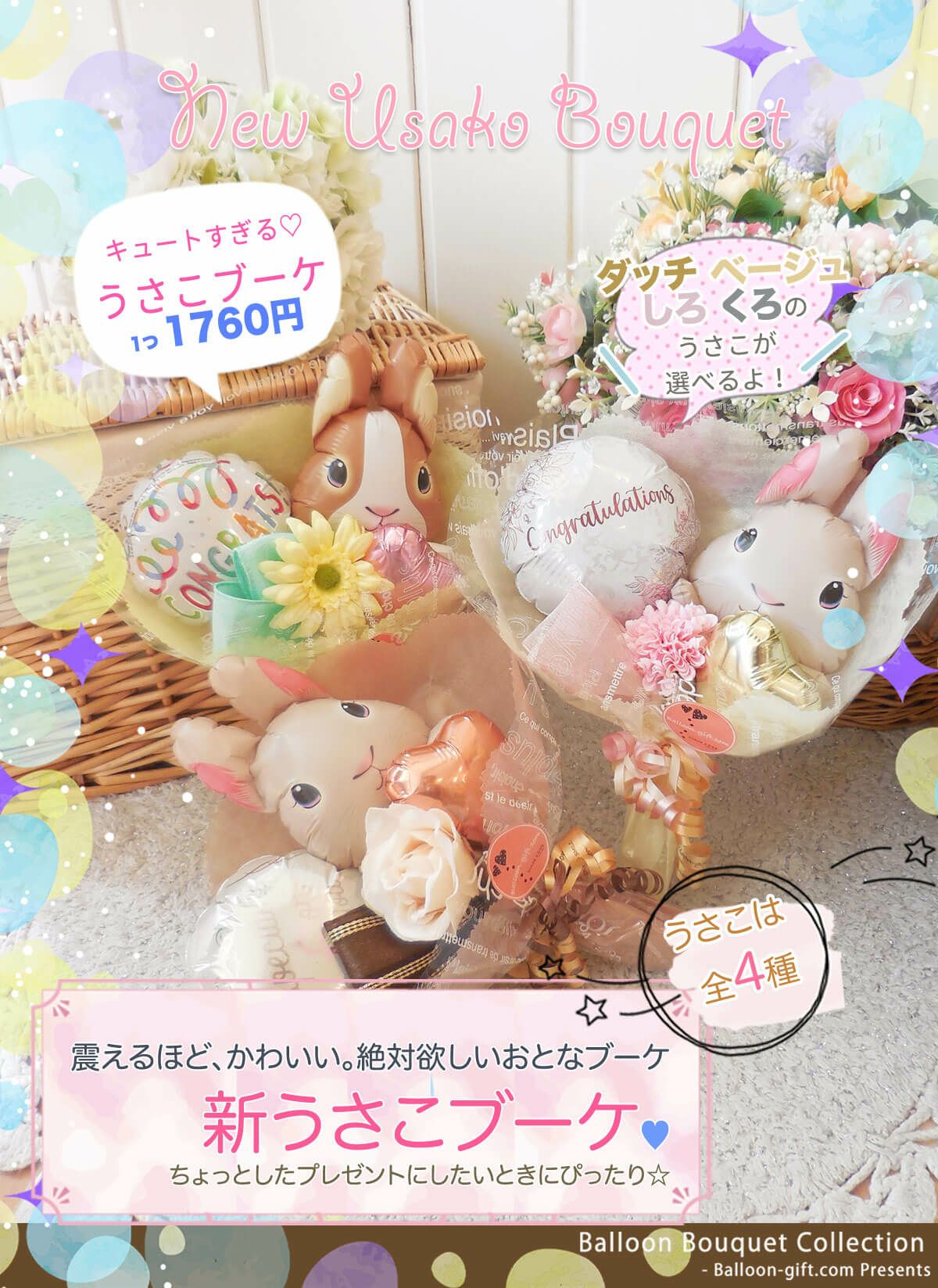 4. 新登場『大人可愛いうさこブーケ』《送料別:1760円》 お誕生日や発表会にオススメのバルーン電報
