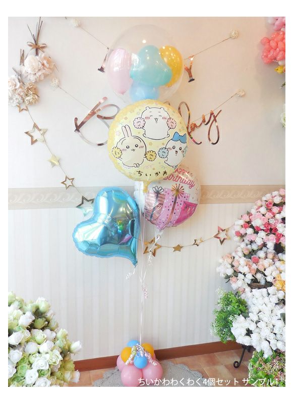 4. 『「ちいかわ」のなんかかわいい、わくわく4個セット』【BL-E】 お誕生日や発表会にオススメのバルーン電報 店舗受け取り・発送どちらもOK! 《中箱 送料込 7850円 /店舗受取:6,250円 税別》