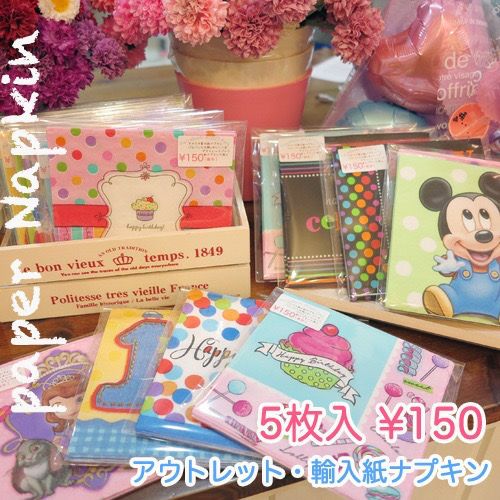 《送料別商品》5枚で150円! 輸入紙ナプキンのアウトレットセール!
