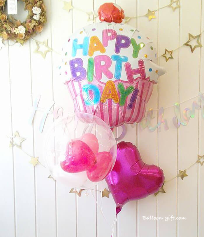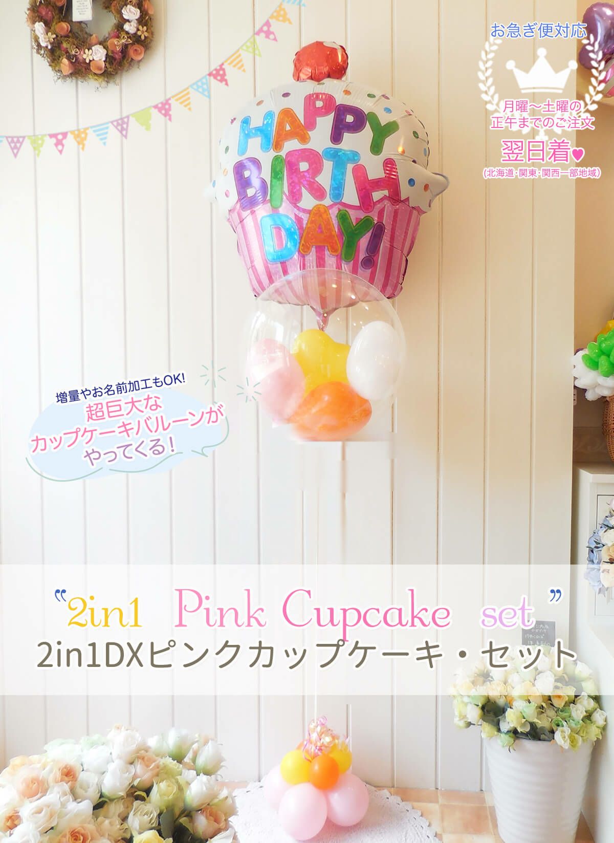 5. 【お誕生日専用】大箱でお届け!2in1DXピンクカップケーキ・セット ★お誕生日のお祝い専用バルーン電報★【BL-E/F】店舗受け取り・発送どちらもOK!《大箱送料込6600円 / 店頭受取:4500円 税別》