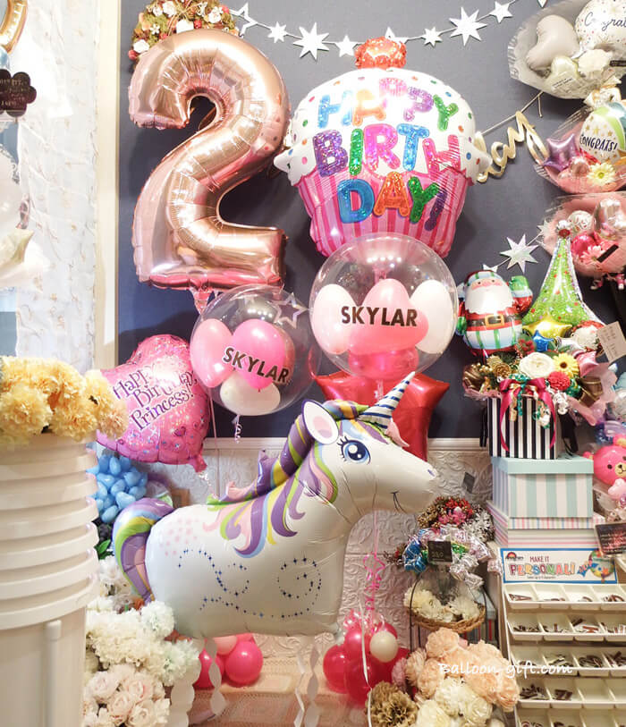 お誕生日や開店周年に大人気のバルーン電報【1桁BL-EF/2桁FG/3桁HIJ】