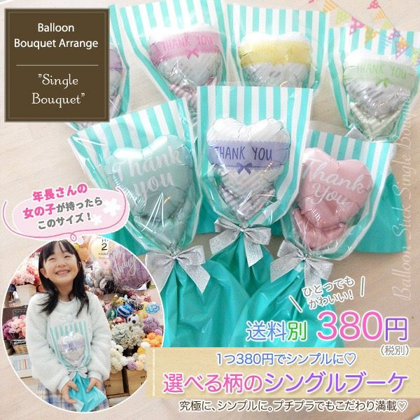 4. バルーン1本で勝負!『選べる柄のシングルブーケ』 《1個380円 送料別》 送別・卒業入学や発表会にオススメのバルーン電報
