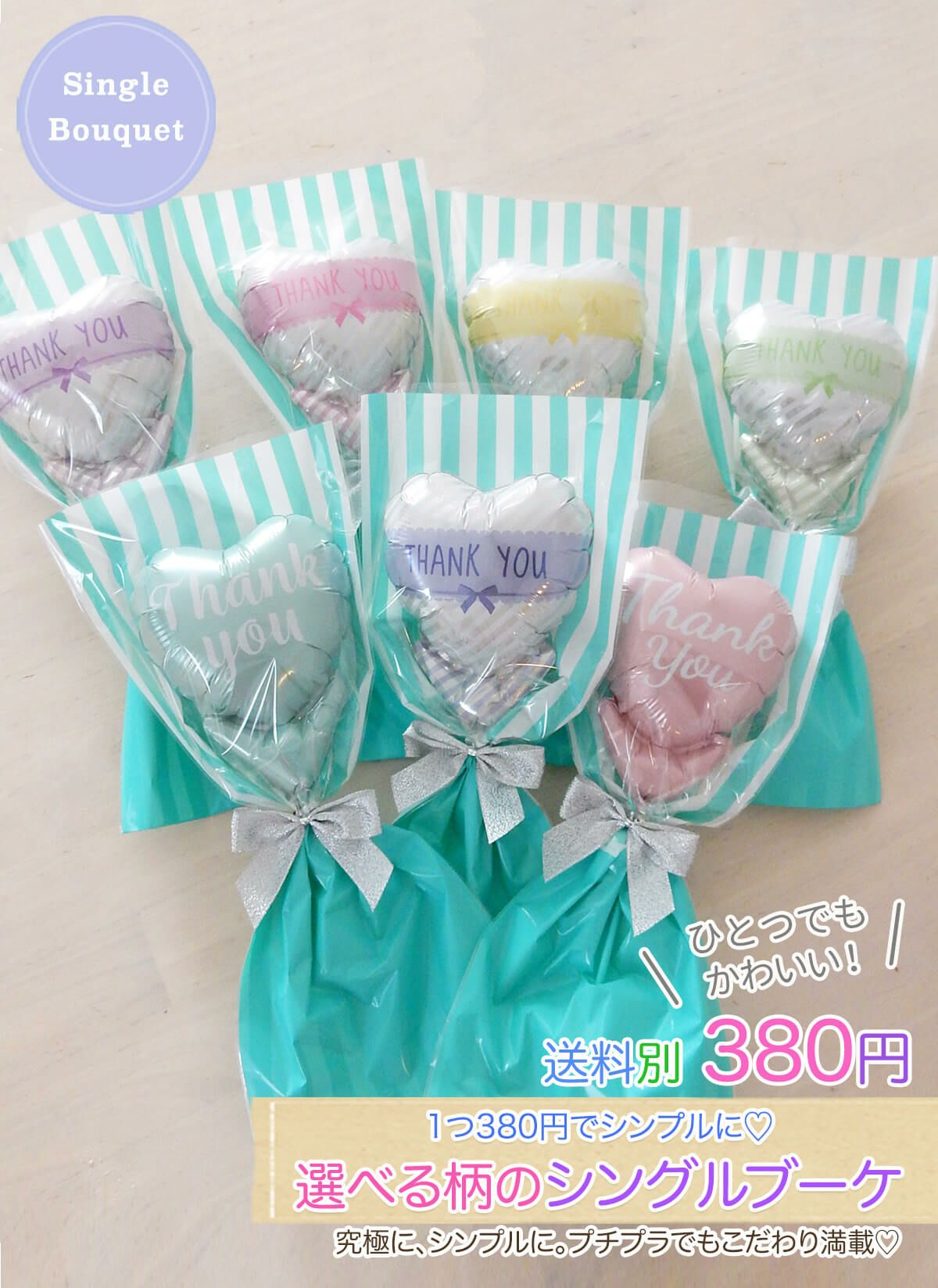 3. バルーン1本で勝負!『選べる柄のシングルブーケ』 《1個380円 送料別》 送別・卒業入学や発表会にオススメのバルーン電報