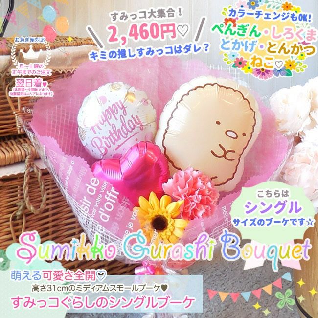 4. 『すみっコぐらしのシングルブーケ』《送料別 2460円》 発表会やお誕生日におすすめのバルーン電報★【BL-A/B】