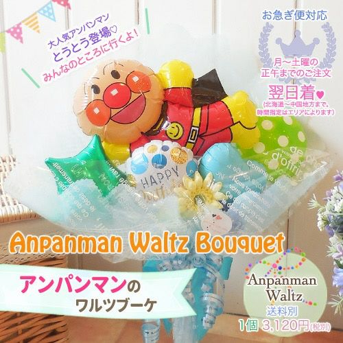 3. ★全店入荷待ち★バルーンの花束 「アンパンマンのミディアムブーケ 『ワルツ』《送料別:3120円》 お誕生日や発表会にオススメのバルーン電報