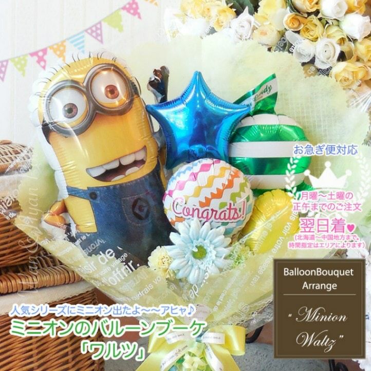 店舗受け取りなら送料無料♥《ブーケは送料900円から発送もOK》 バルーンの花束 『ミニオンのミディアムブーケ・ワルツ』 」