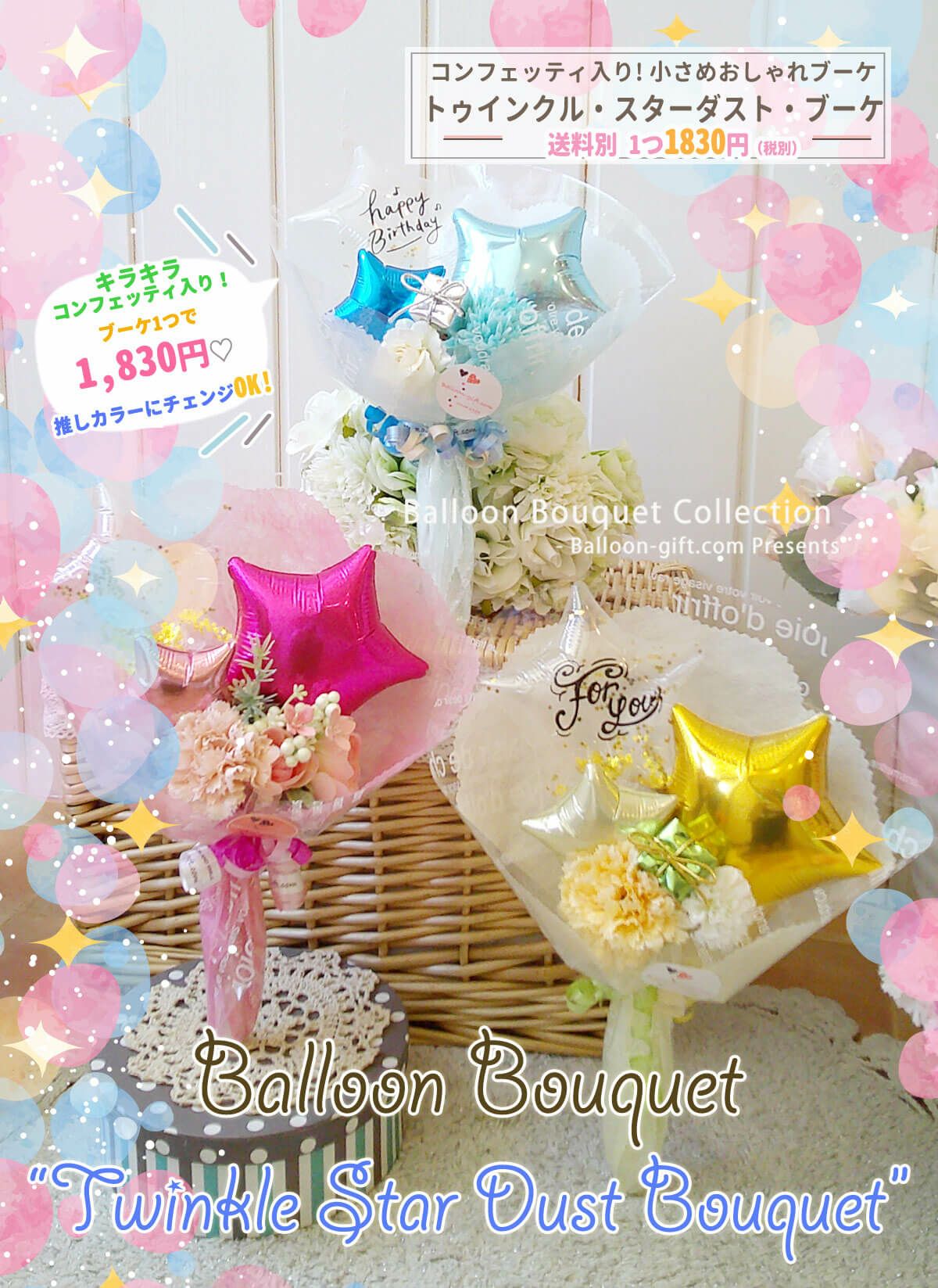 店舗受け取りなら送料無料♥《ブーケは送料900円から発送もOK》 小さめおしゃれなバルーンブーケ 『トゥインクル・スターダスト・ブーケ』