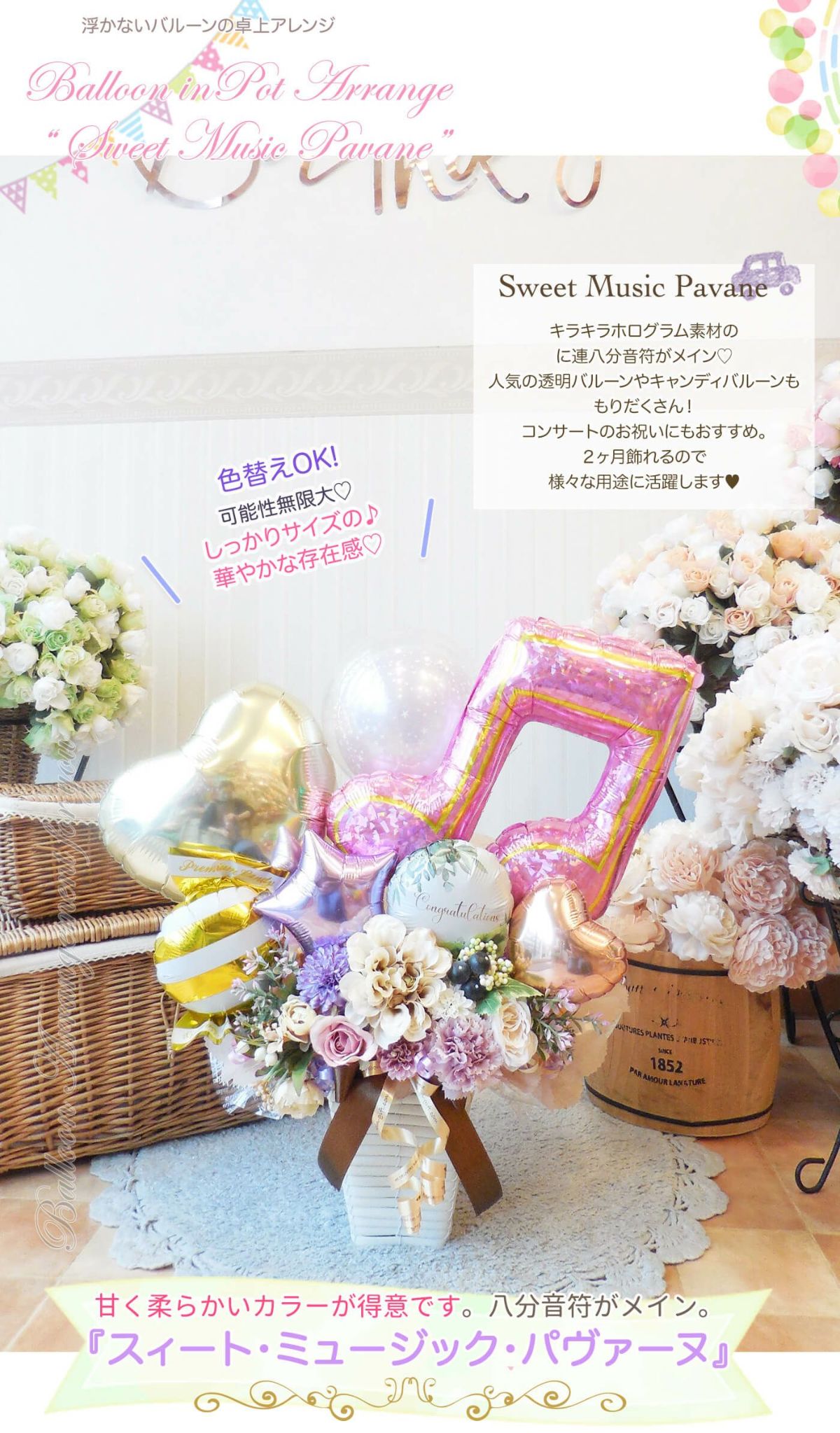 3. 卓上アレンジ「スィート・ミュージック・パヴァーヌ」《送料無料 10160円》 お誕生日や発表会に人気のバルーン電報【BL-C/D4】