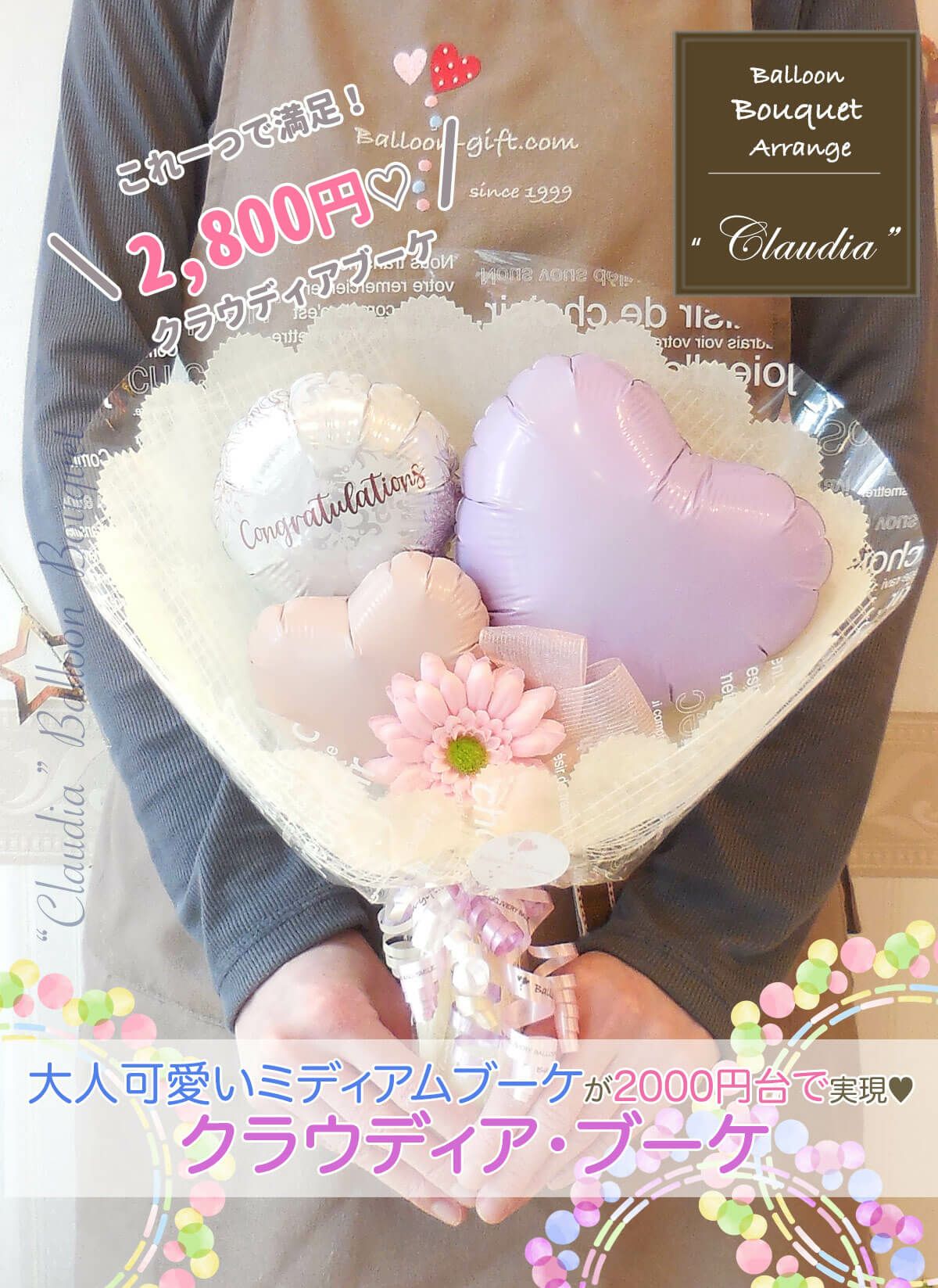 4. 大人可愛い小さめバルーンブーケ 〜クラウディア〜《送料別:2800円》 お誕生日や発表会・卒園卒業にオススメのバルーン電報
