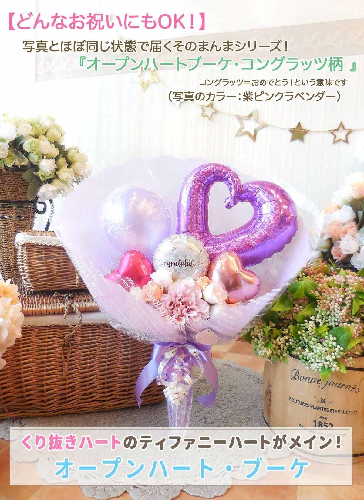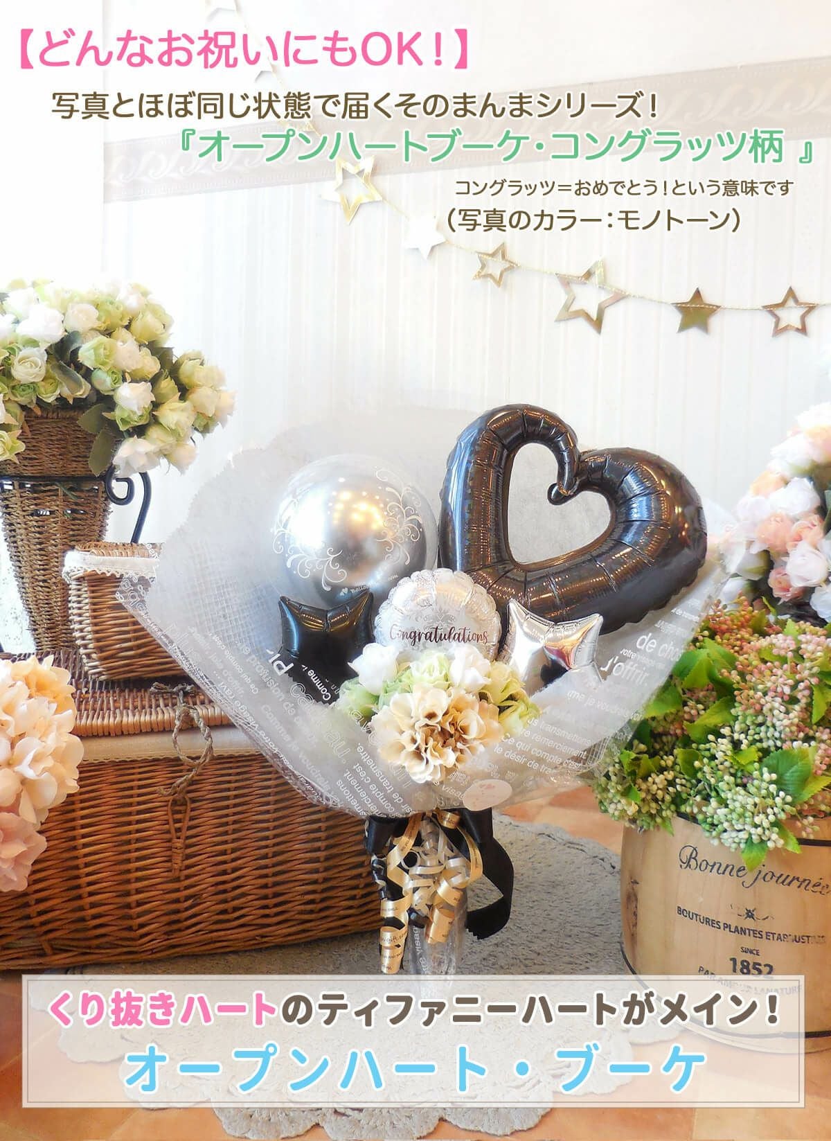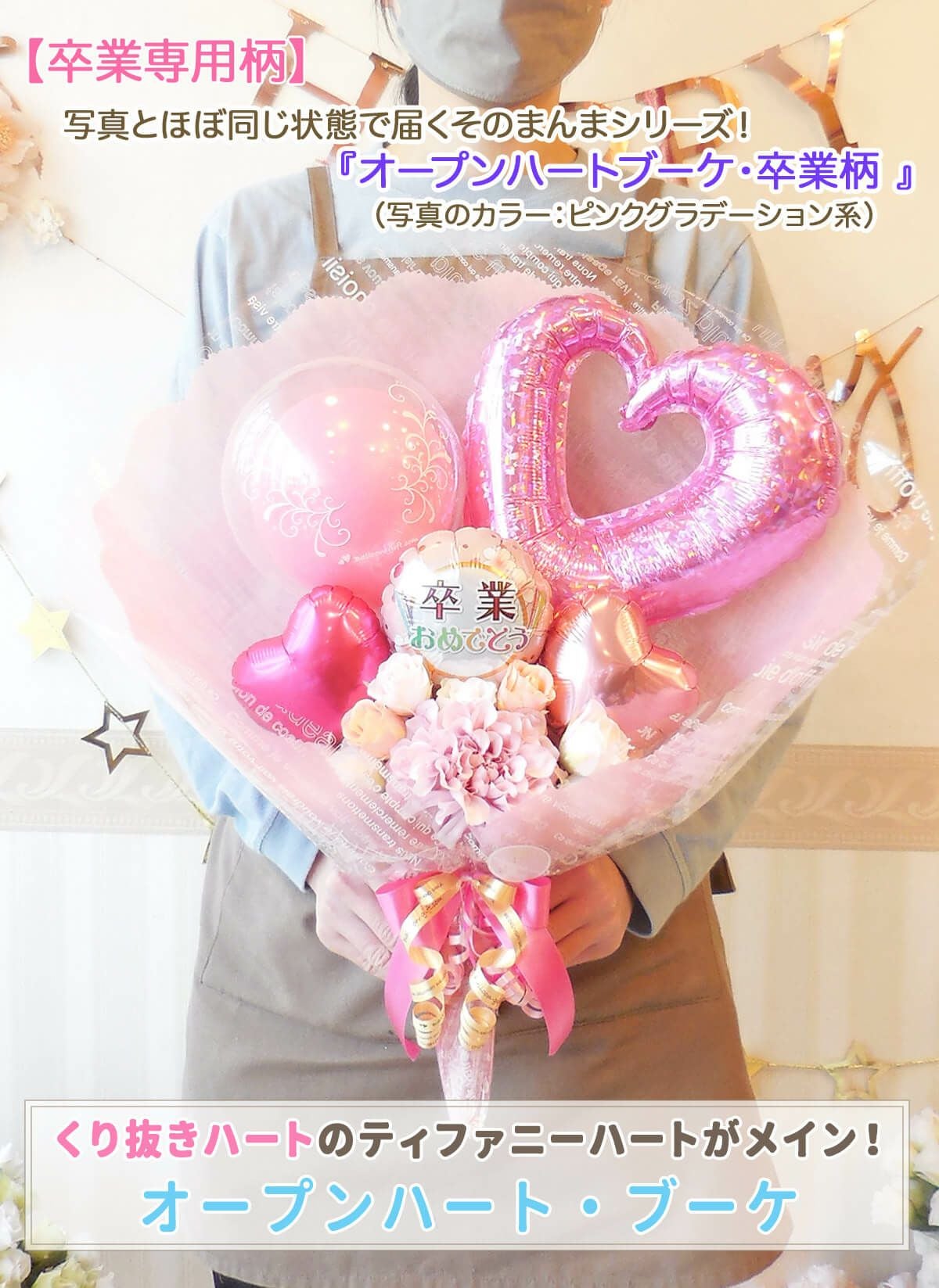 ★花束ブーケ:卒業柄/コングラッツ柄のオープンハート・ブーケ (選べる全6色!)