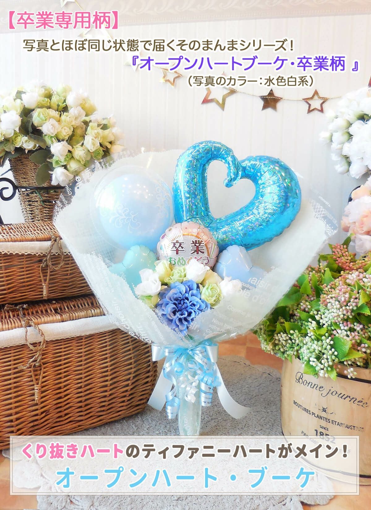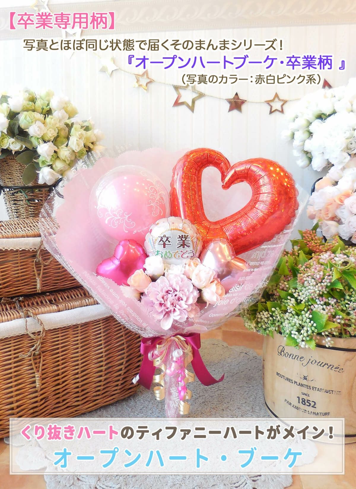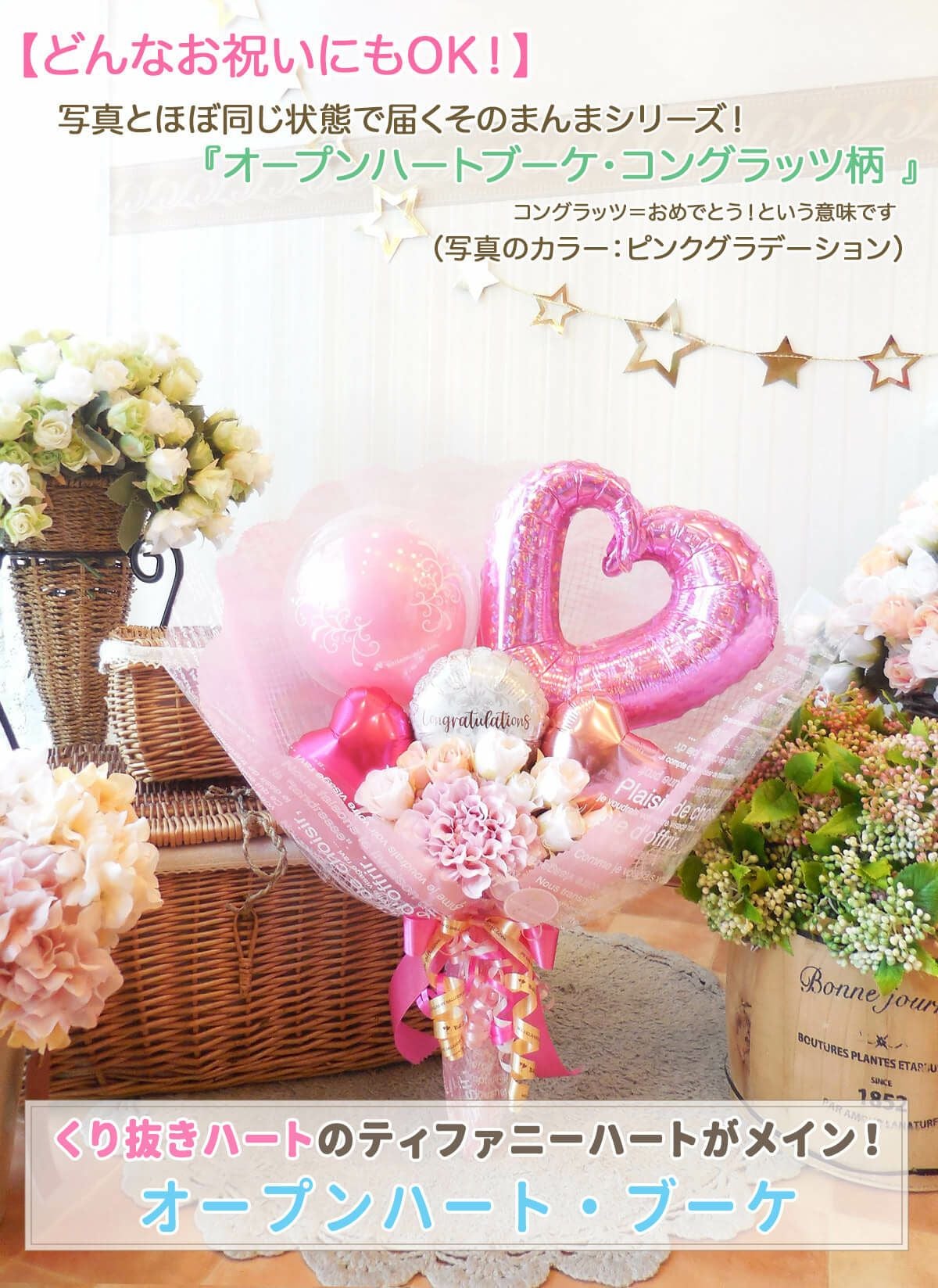 ★花束ブーケ:卒業柄/コングラッツ柄のオープンハート・ブーケ (選べる全6色!)