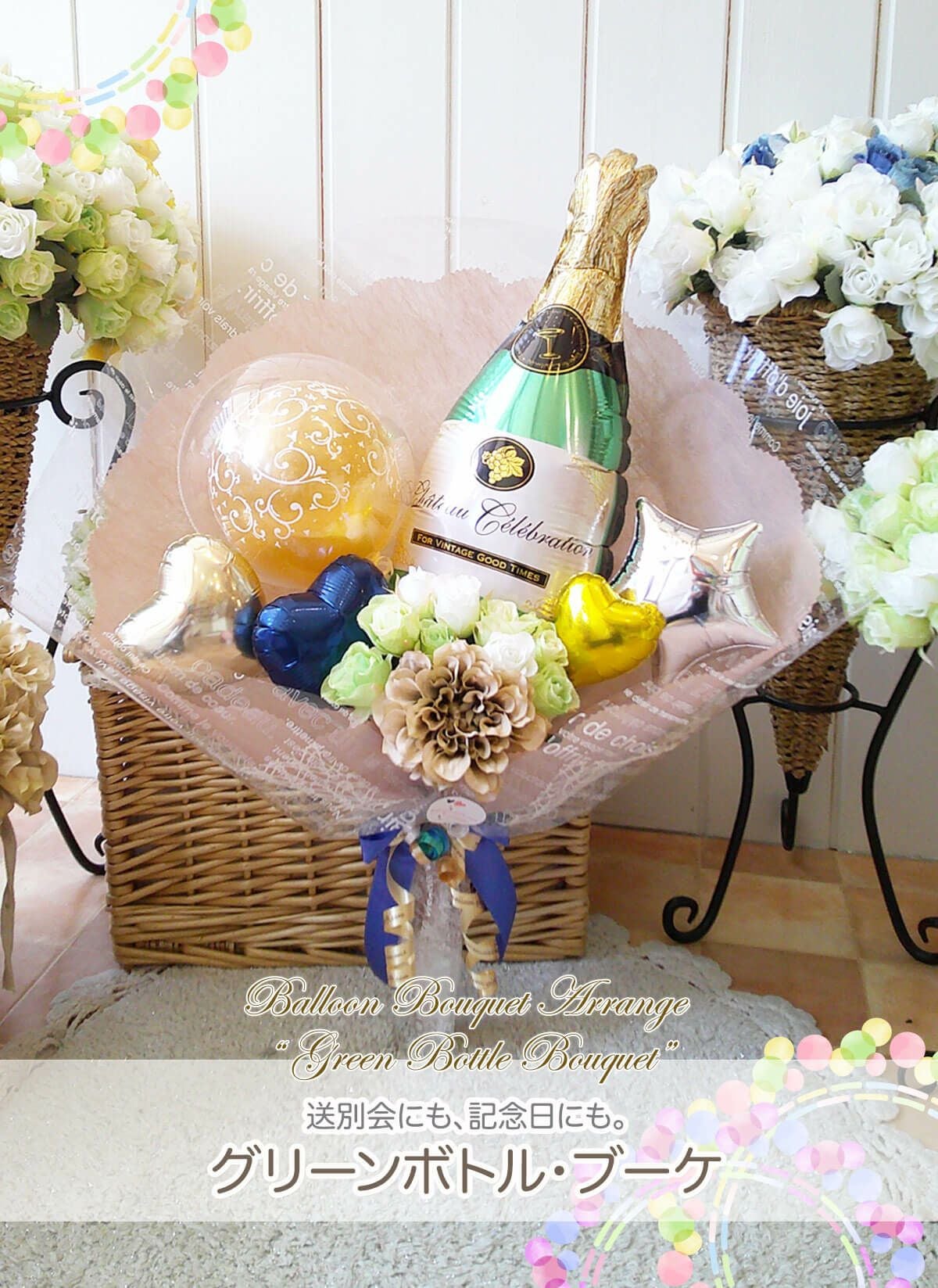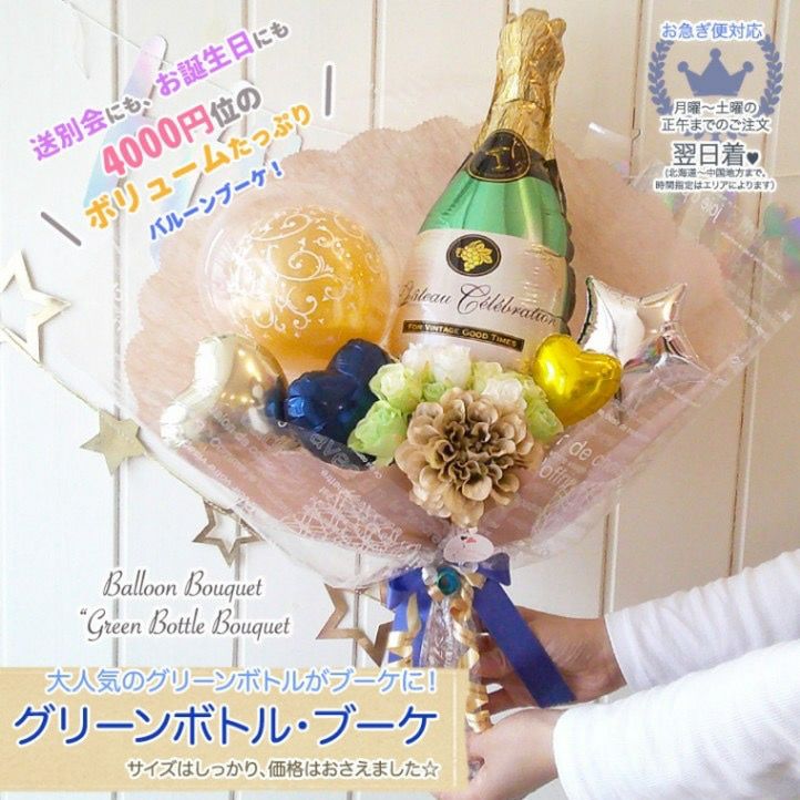 ■大きめサイズでお花もしっかり。お誕生日・ウエディング・発表会・開店周年など幅広く♡ 【LV4要予約】グリーンボトル・ブーケ