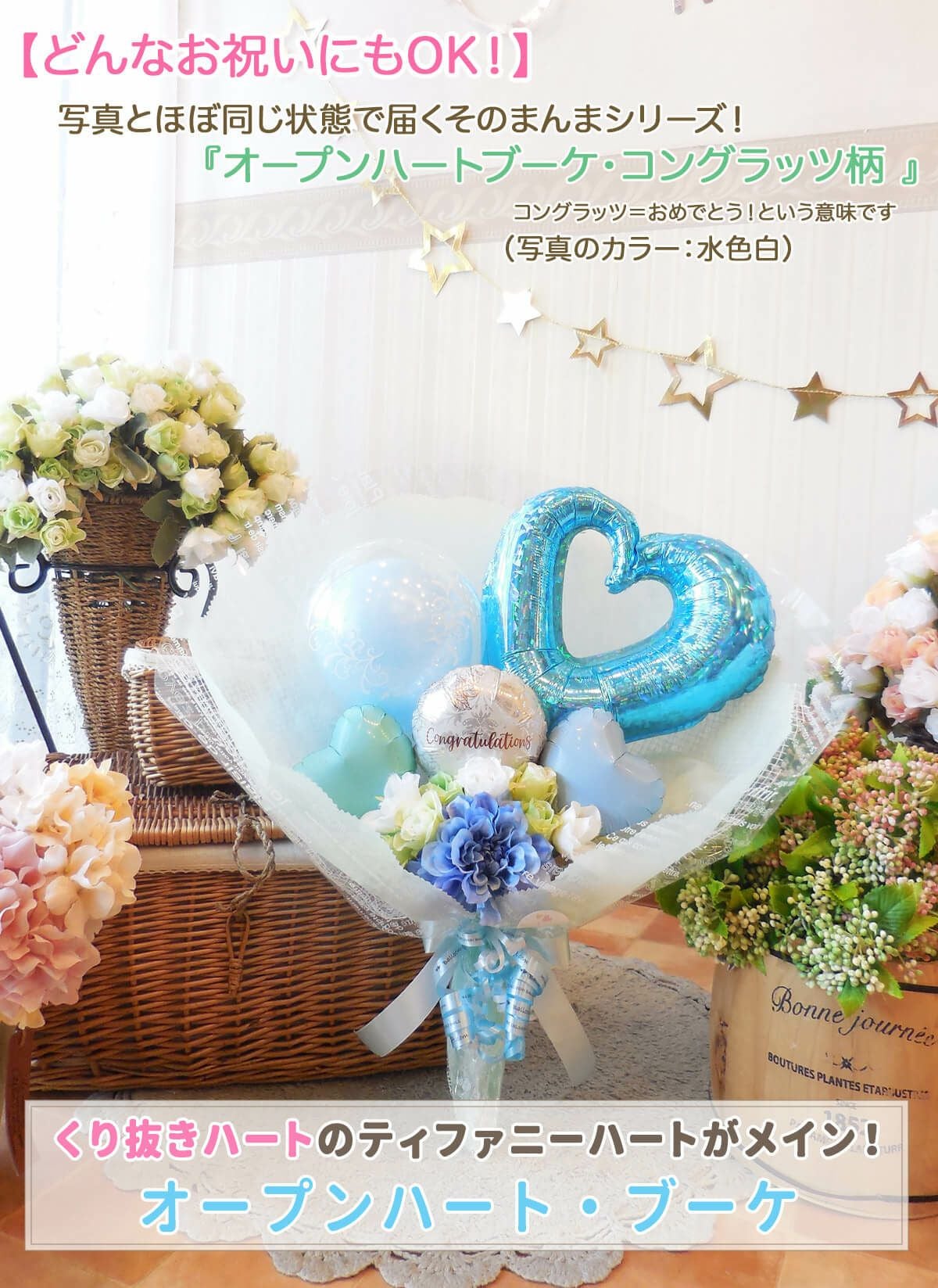 ■大人気ティファニースタイル。透明バルーンとオープンハートで バルーンの透明感がより一層引き立つ♡ 【LV3】シンプルに抱えるブーケ