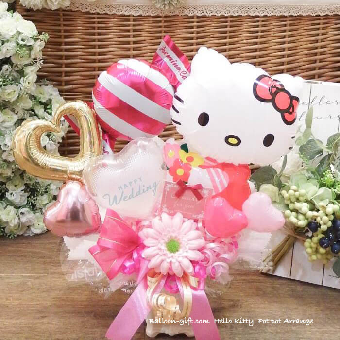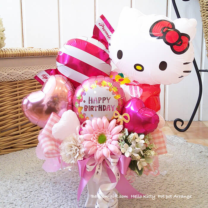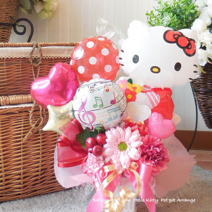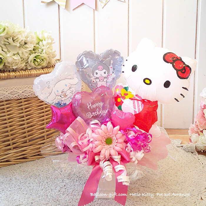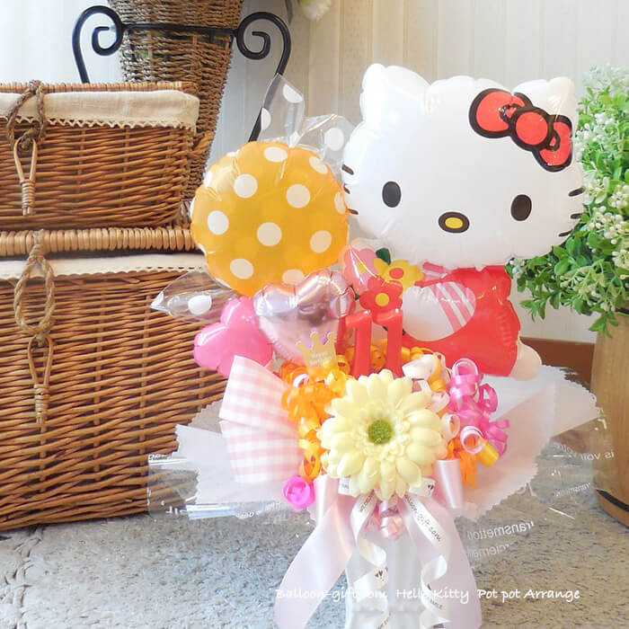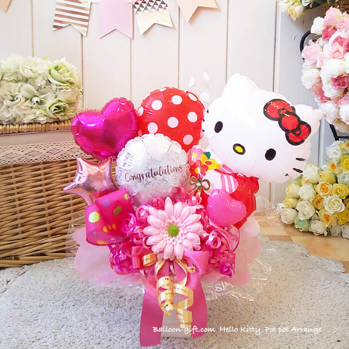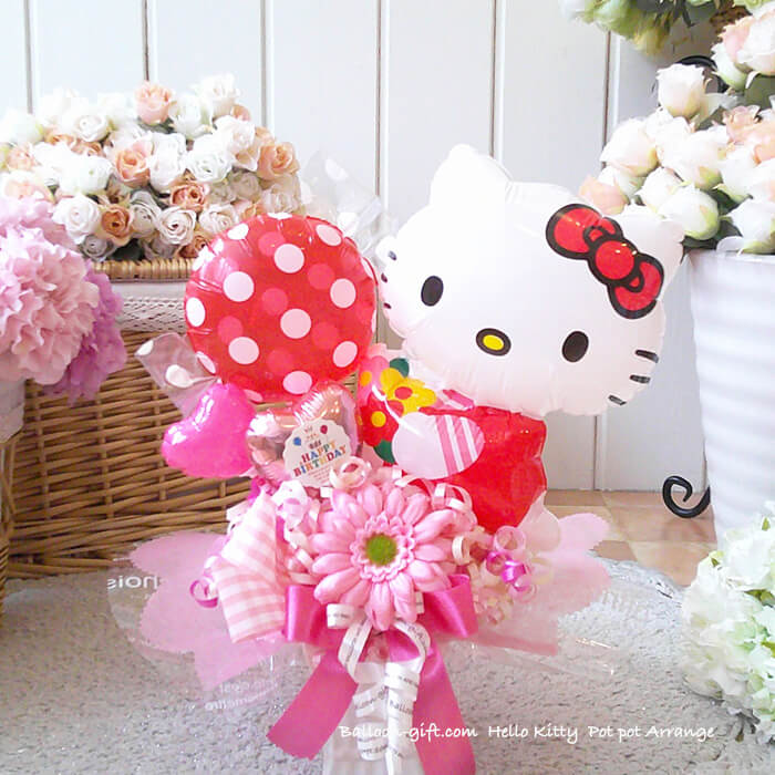 卓上アレンジ「ハローキティポット」《送料無料 4630円》 お誕生日や発表会にオススメのとってもかわいいバルーン電報【BL-B/D1.5】