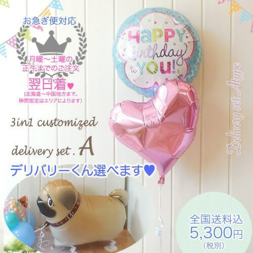 月〜土曜 正午までの決済確定ご注文は即日発送可能♡ あるくバルーンがメインの『デリバリー3個セット Aタイプ』