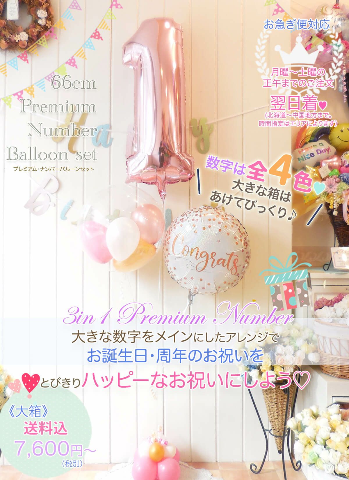 卓上アレンジ「数字がメインのアンプロンプチュ・ナンバー」 ★人気アレンジの数字入りバージョン新登場★《送料無料 7200円》 お誕生日やウエディング・開店周年にオススメのバルーン電報【BL-B/D2】