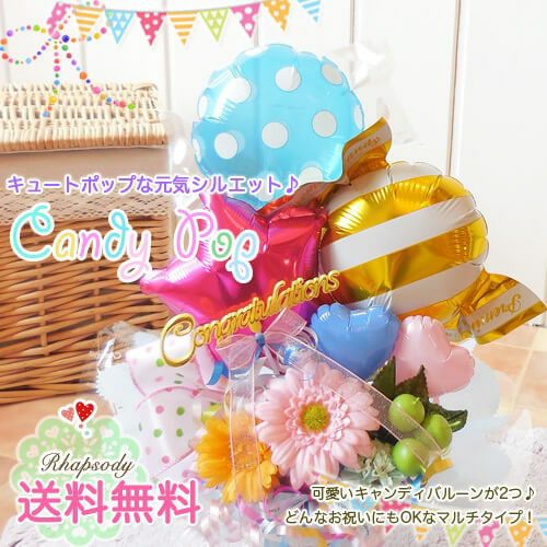 【完売】卓上アレンジ ~キャンディ・ポップ~ 賑やかポップなカラーが得意です。《送料無料 5640円》 お誕生日や開店周年・発表会にオススメのバルーン電報【BL-B/D1.5】