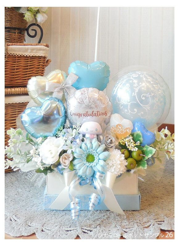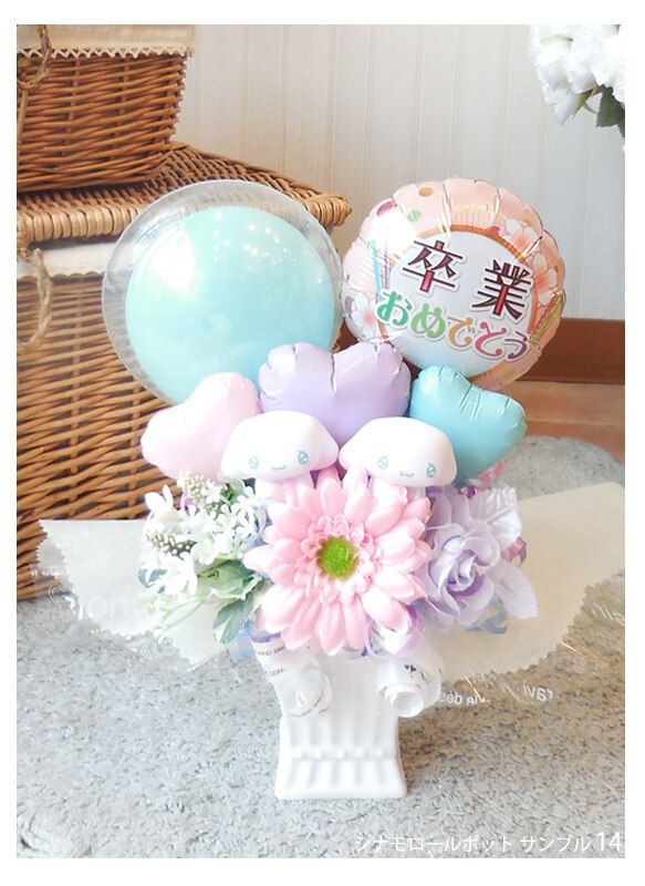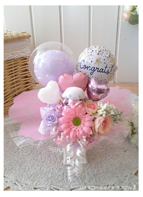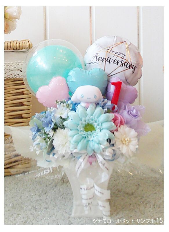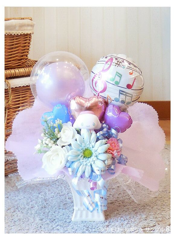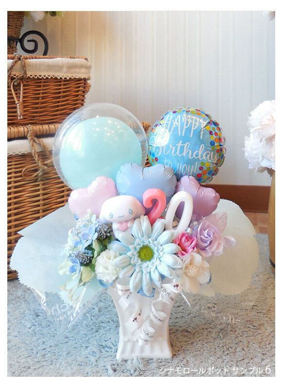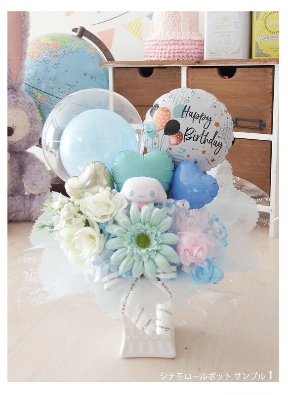4. 小さめで可愛い!『シナモロールdeバルーンポット』《送料無料 5940円》発表会やお誕生日におすすめのバルーン電報【BL-A/D1.5】シナモンが登場!