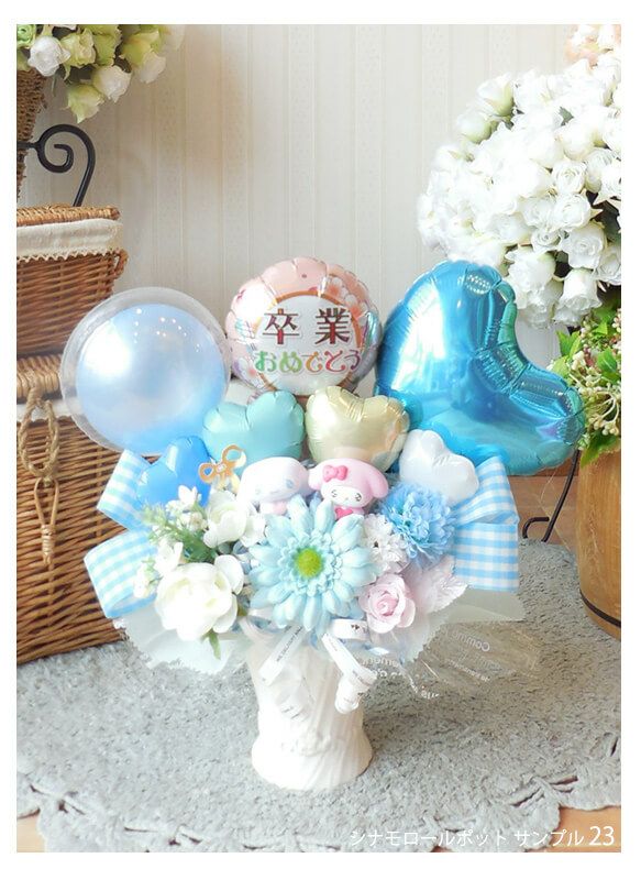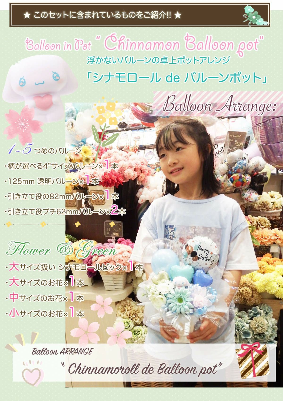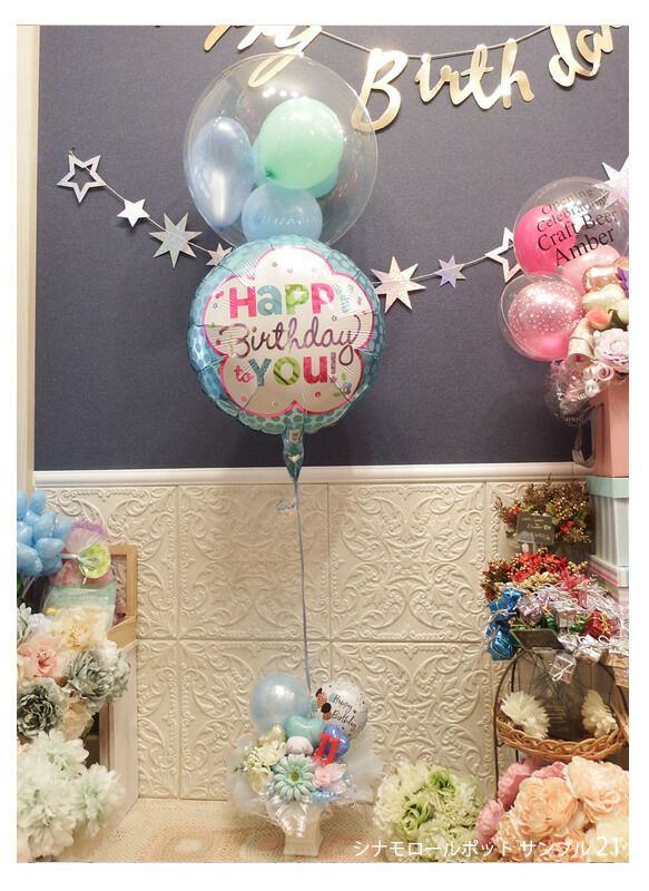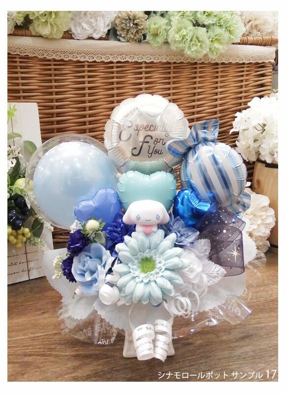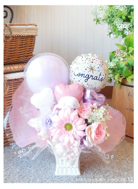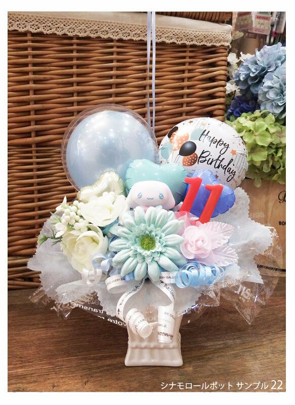 4. 小さめで可愛い!『シナモロールdeバルーンポット』《送料無料 5940円》発表会やお誕生日におすすめのバルーン電報【BL-A/D1.5】シナモンが登場!