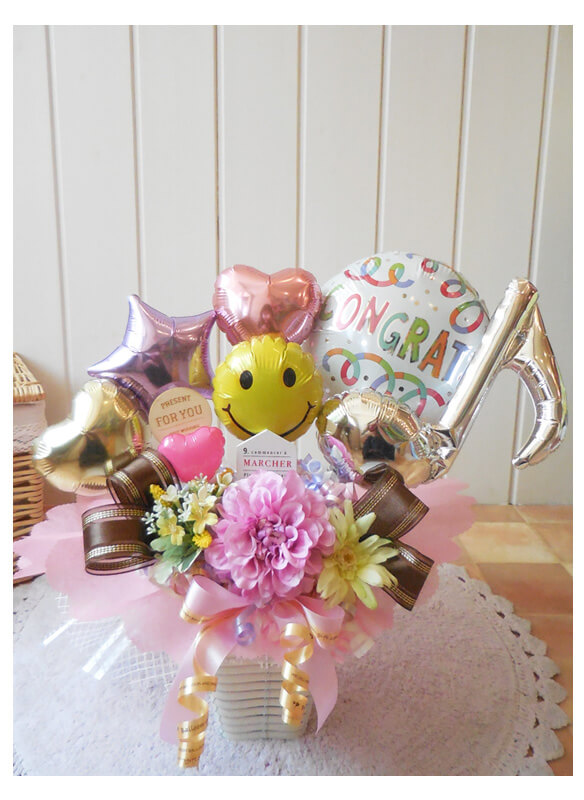 卓上アレンジ「アンプロンプチュ・メモリー」 《送料無料 5050円》 卒業卒園・お誕生日やウエディング・開店周年・発表会にオススメのバルーン電報【BL-A/D1.5】