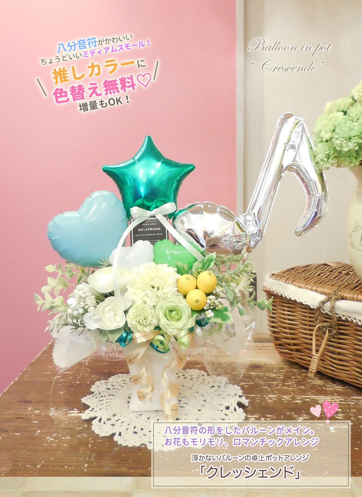 八分音符がメイン&お花が多めで嬉しい☆ 卓上アレンジ ~新・クレッシェンド~ 《送料無料 6,850円》 発表会やお誕生日に大人気のバルーン電報【BL-B/D1.5】