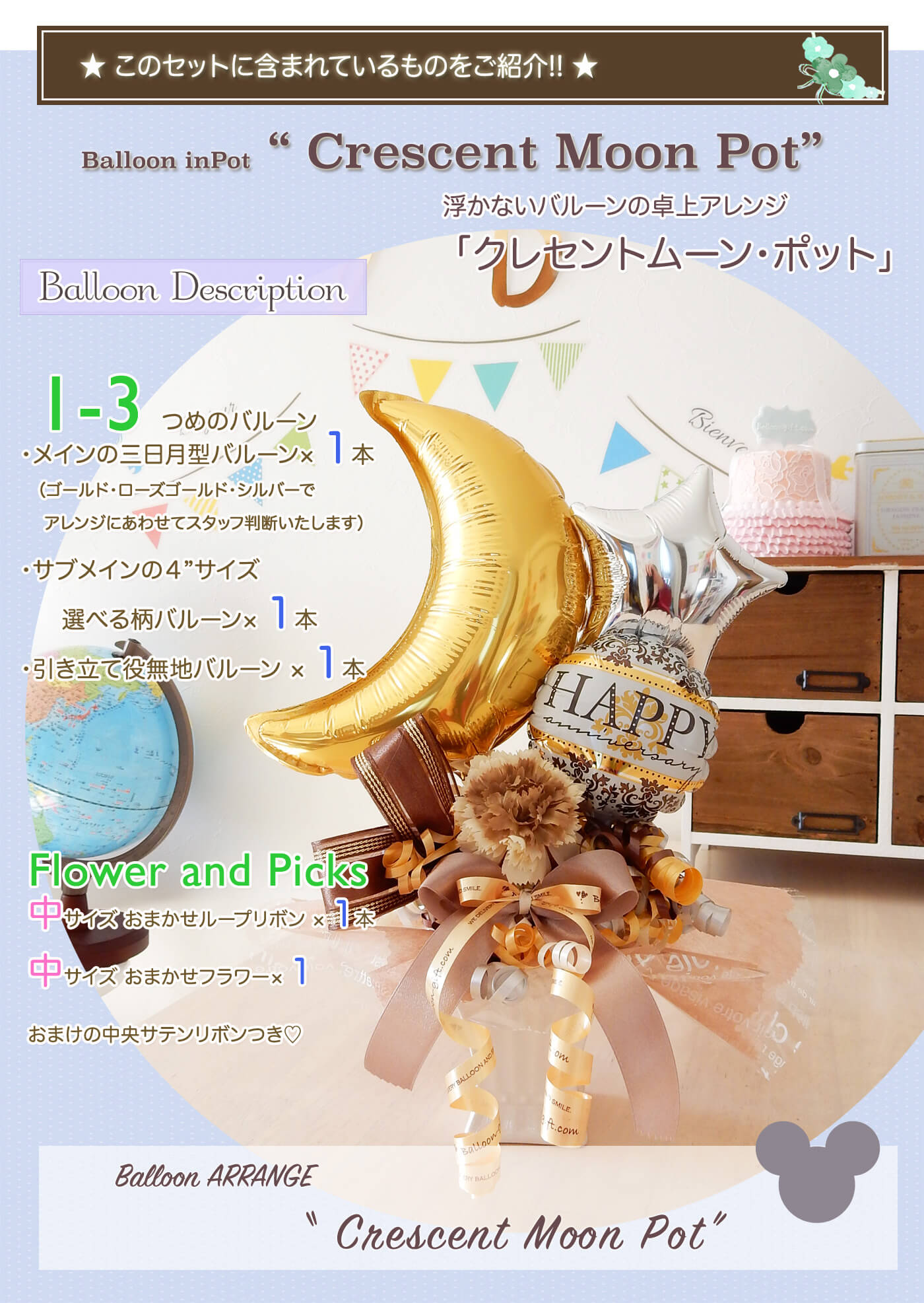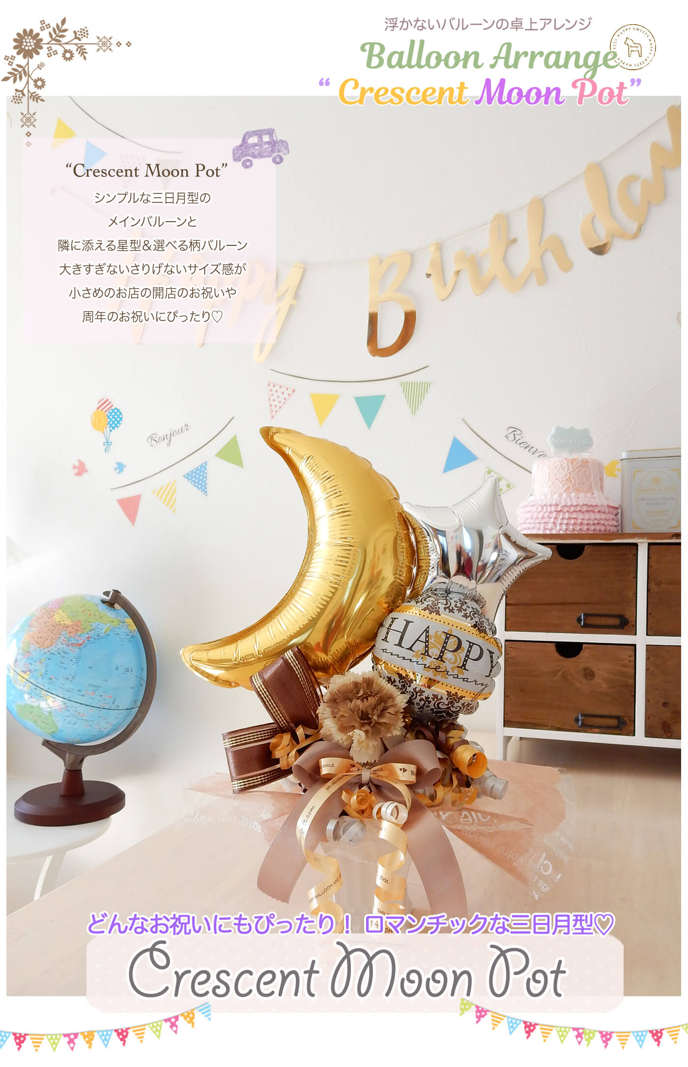 3. クレセントムーン・ポット《送料無料 4260円》 開店や周年のお祝いにおすすめのバルーン電報【BL-B/D1.5】