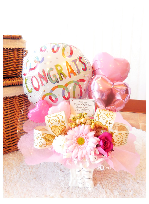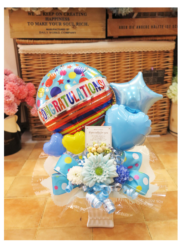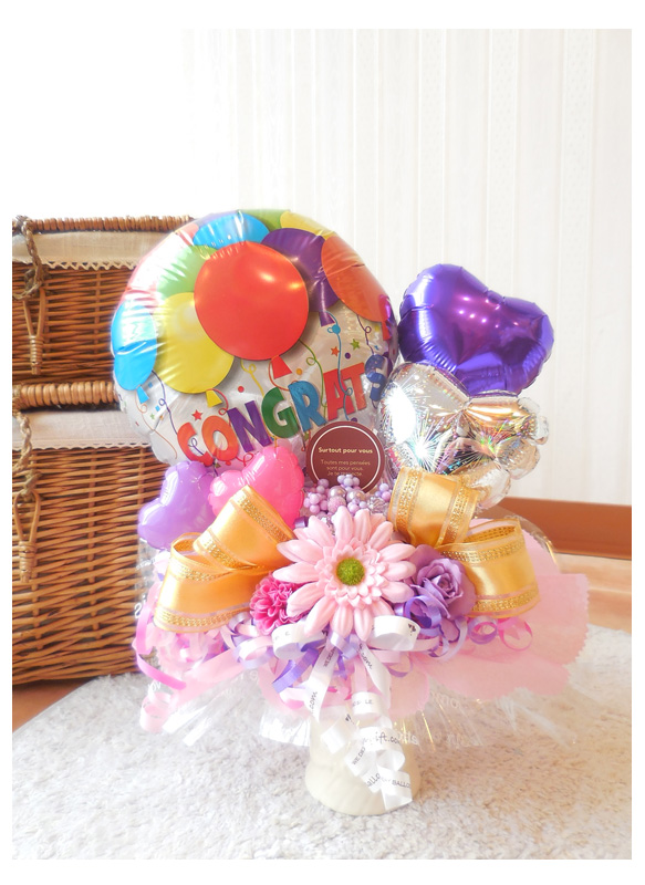 卓上アレンジ「アンプロンプチュ・メモリー」 《送料無料 5050円》 卒業卒園・お誕生日やウエディング・開店周年・発表会にオススメのバルーン電報【BL-A/D1.5】