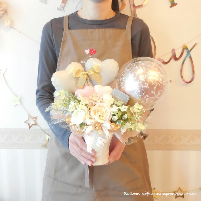 アンプロンプチュシリーズで一番大きいアレンジです。披露宴や二次会のバルーン電報として大人気です。また飲食店、ヘアサロン、ネイルサロン、病院クリニックの開店開業周年お祝いとしても人気。全国送料無料で宅配します。有料・無料メッセージカードもお付けできます