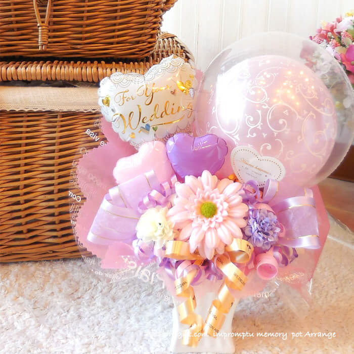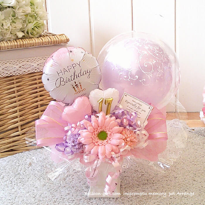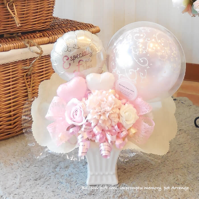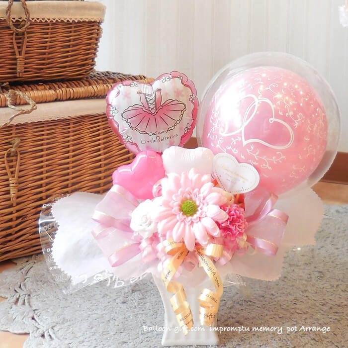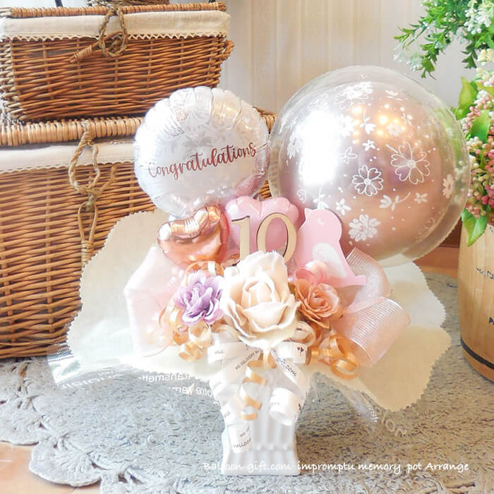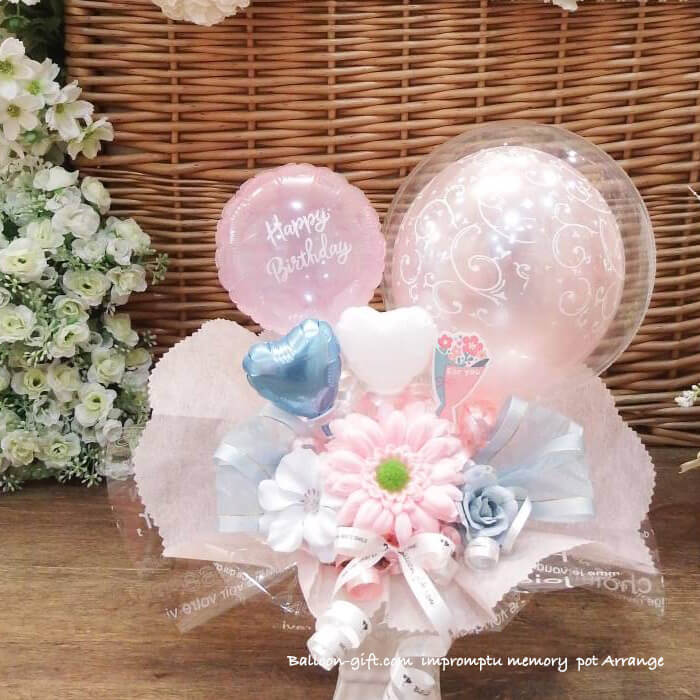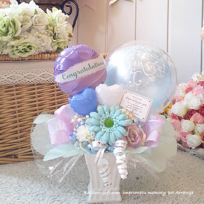 卓上アレンジ「アンプロンプチュ・メモリー」 《送料無料 5050円》 卒業卒園・お誕生日やウエディング・開店周年・発表会にオススメのバルーン電報【BL-A/D1.5】