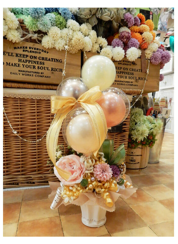 卓上アレンジ「アンプロンプチュ・メモリー」 《送料無料 5050円》 卒業卒園・お誕生日やウエディング・開店周年・発表会にオススメのバルーン電報【BL-A/D1.5】