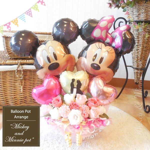 3. 卓上アレンジ「ミッキーミニーのハートポット」 《送料無料 6020円》 お誕生日やウエディング・開店周年に大人気のバルーン電報【BL-B/D2】
