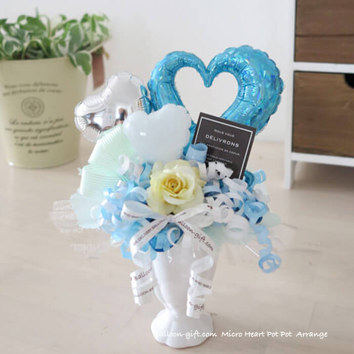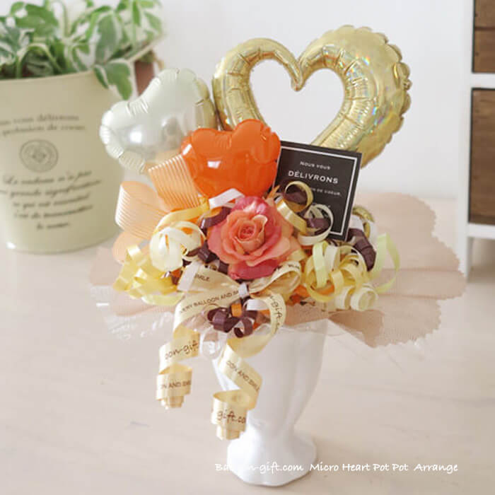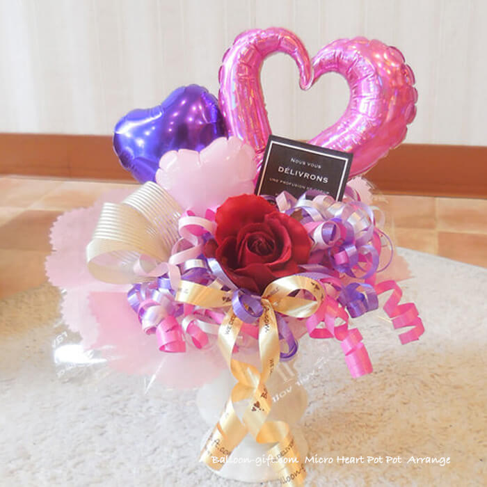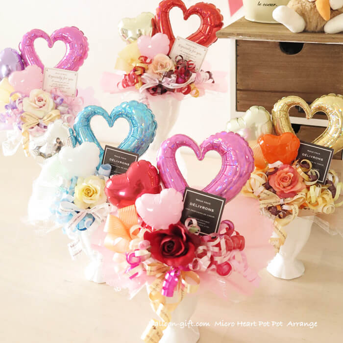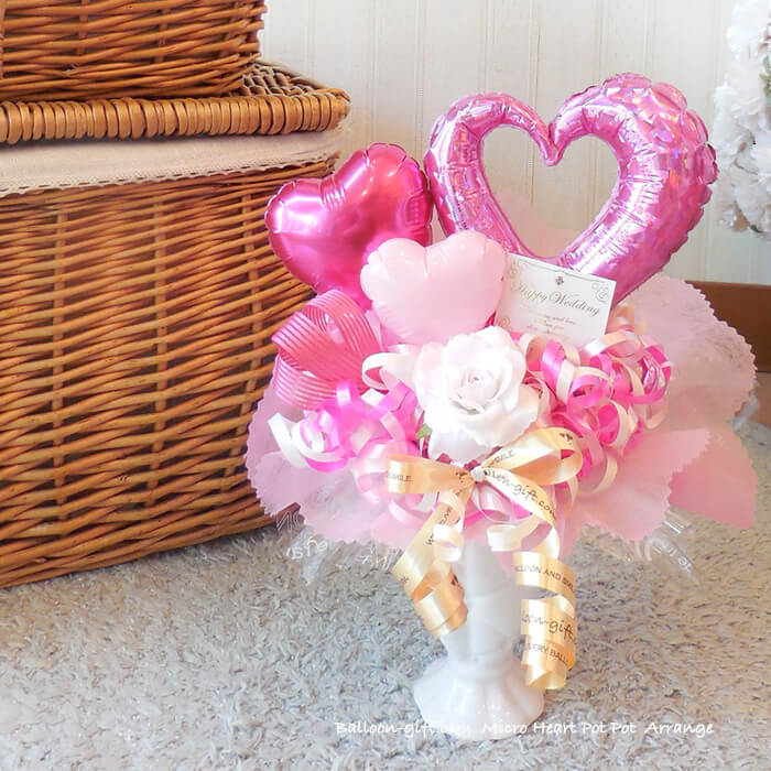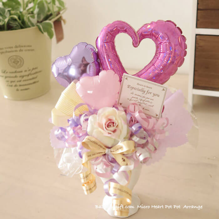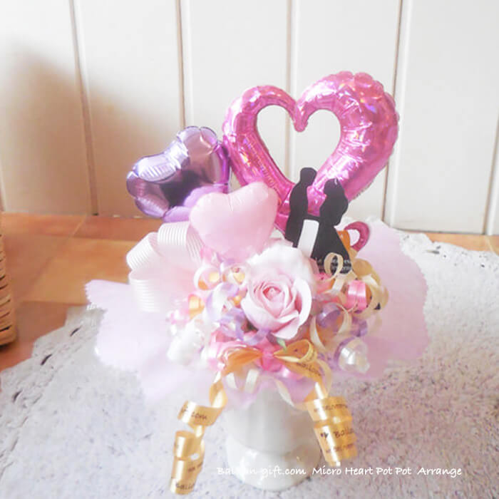 ちいさめ卓上アレンジ「ミクロハートポット」《送料無料3720円》お誕生日や発表会に大人気のかわいいバルーン電報 【BL-A/D1】