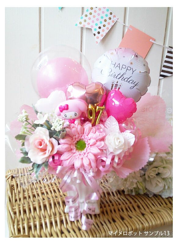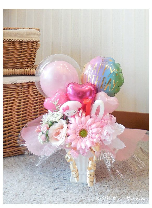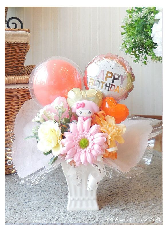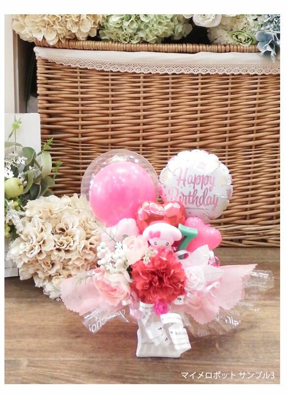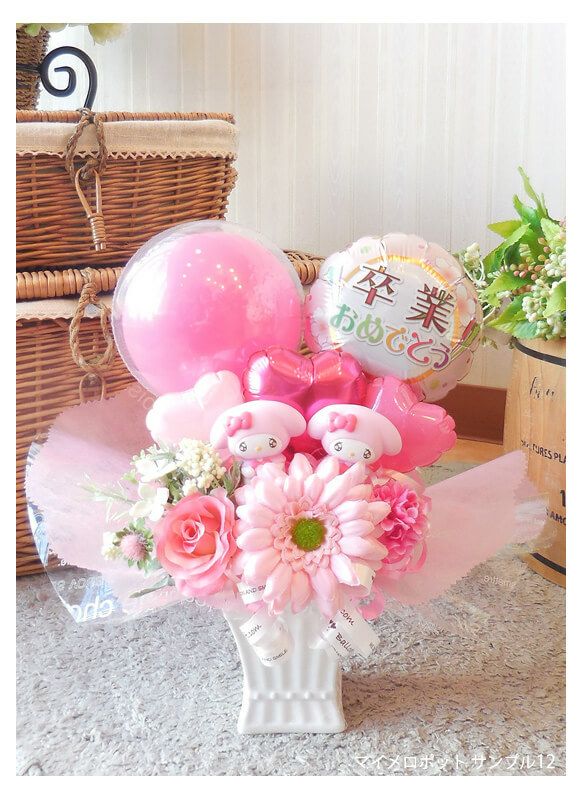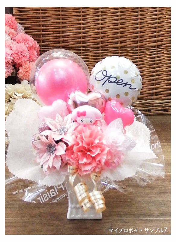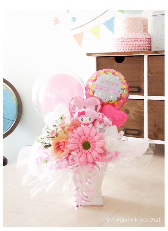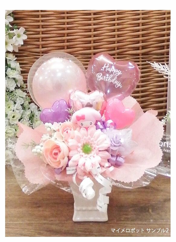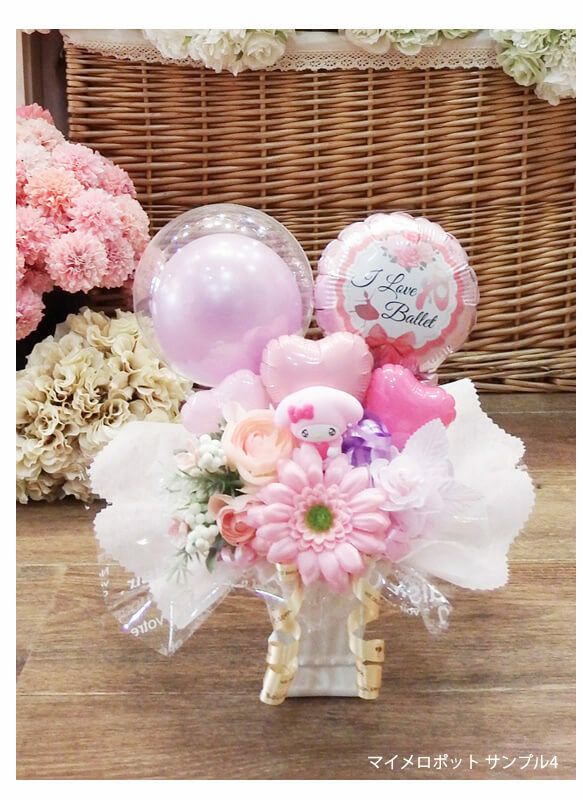 手乗りサイズより少しだけ大きい、「やや小さめアレンジ」がキュート! 小さめで可愛い!『マイメロdeバルーンポット』《送料無料 5940円》