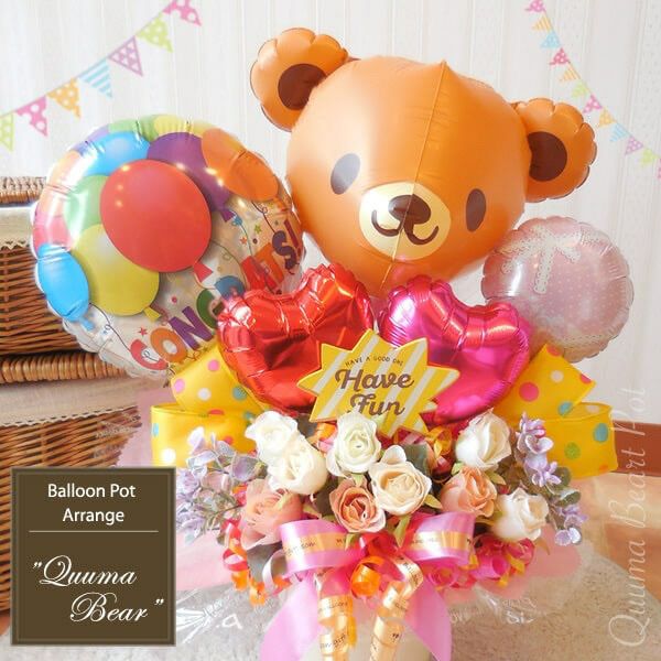 卓上アレンジ「クーマベアーinポット」《送料無料 6800円》 お誕生日や発表会・送別会・卒園卒業に大人気のかわいいバルーン電報【BL-B/D2】
